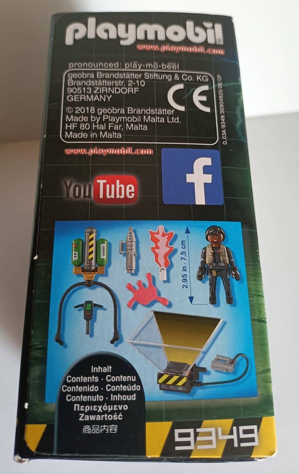 Playmobil 9349 Ghostbuster Winston Zeddemore. Vang zelfs de lastigste spoken met Ghostbuster Winston Zeddemore. Na synchronisatie met de gratis Playmobil-app (download vereist) projecteert de spokenval een 3D spook in de hologramkegel voor een echte spokenjagersmissie. Kies uit 4 verschillende spoken om te vangen! De set bevat Winston Zeddemore, een afneembaar protonenpack, een protonenstraler, een PKE-meter, klevende rode silicone slijmsporen en andere accessoires. Inclusief 1 Playmobil Ghostbusters speelfiguur.