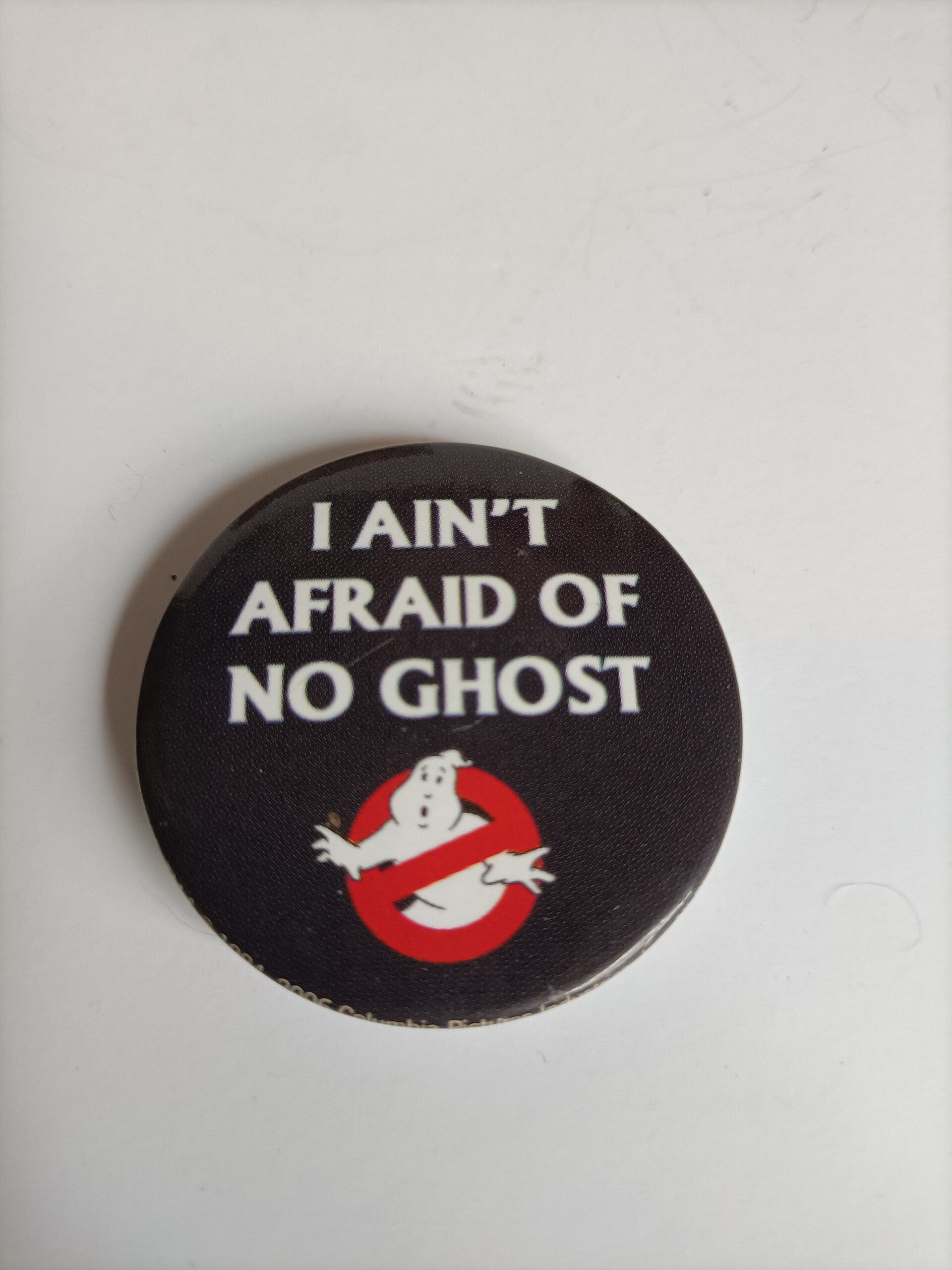 Button zwart met de tekst I aint afraid of no ghost. En het Ghostbusters logo