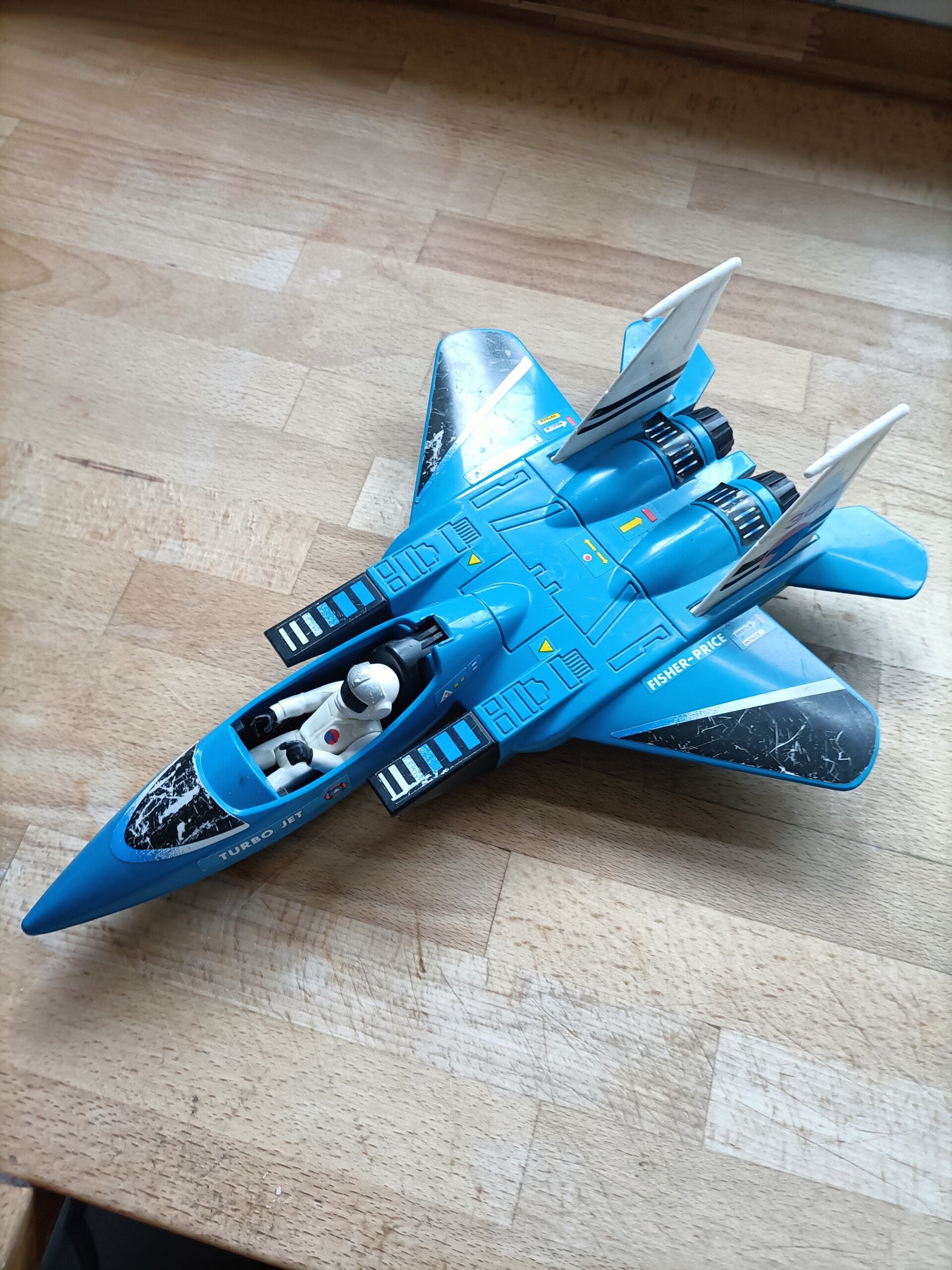 Blauw ruimteschip Fisher Price adventure people. Mist de klep over de cockpit