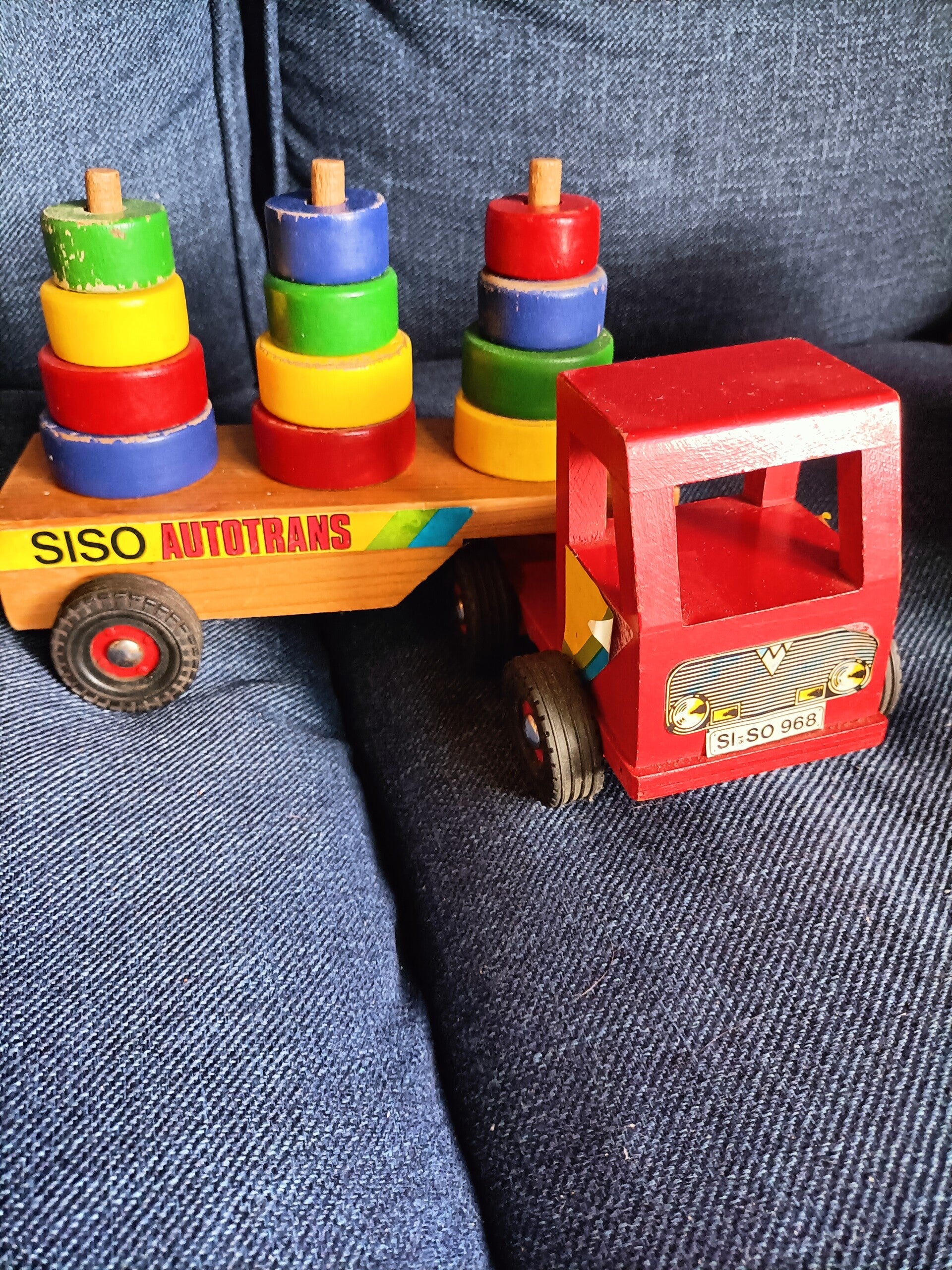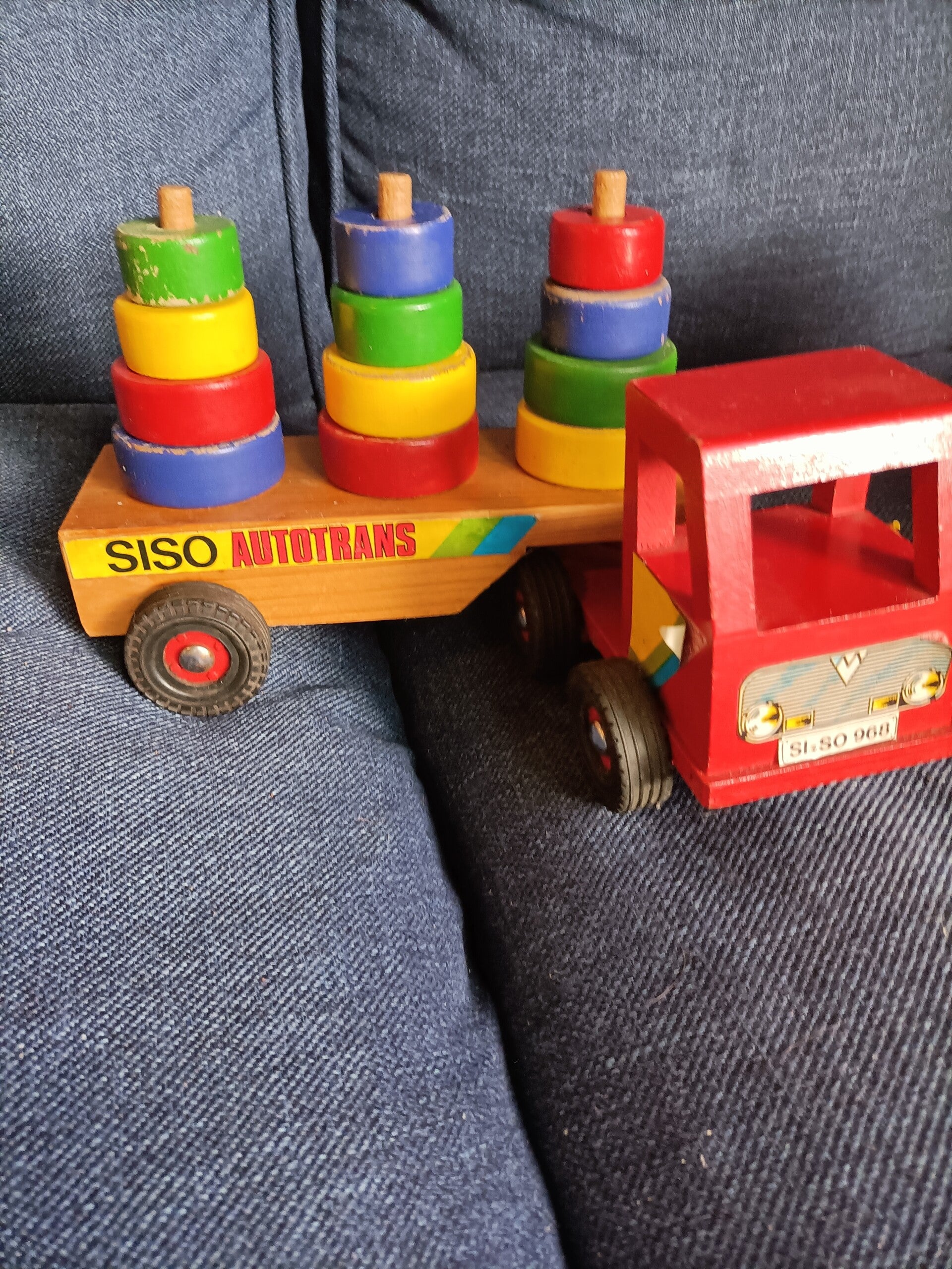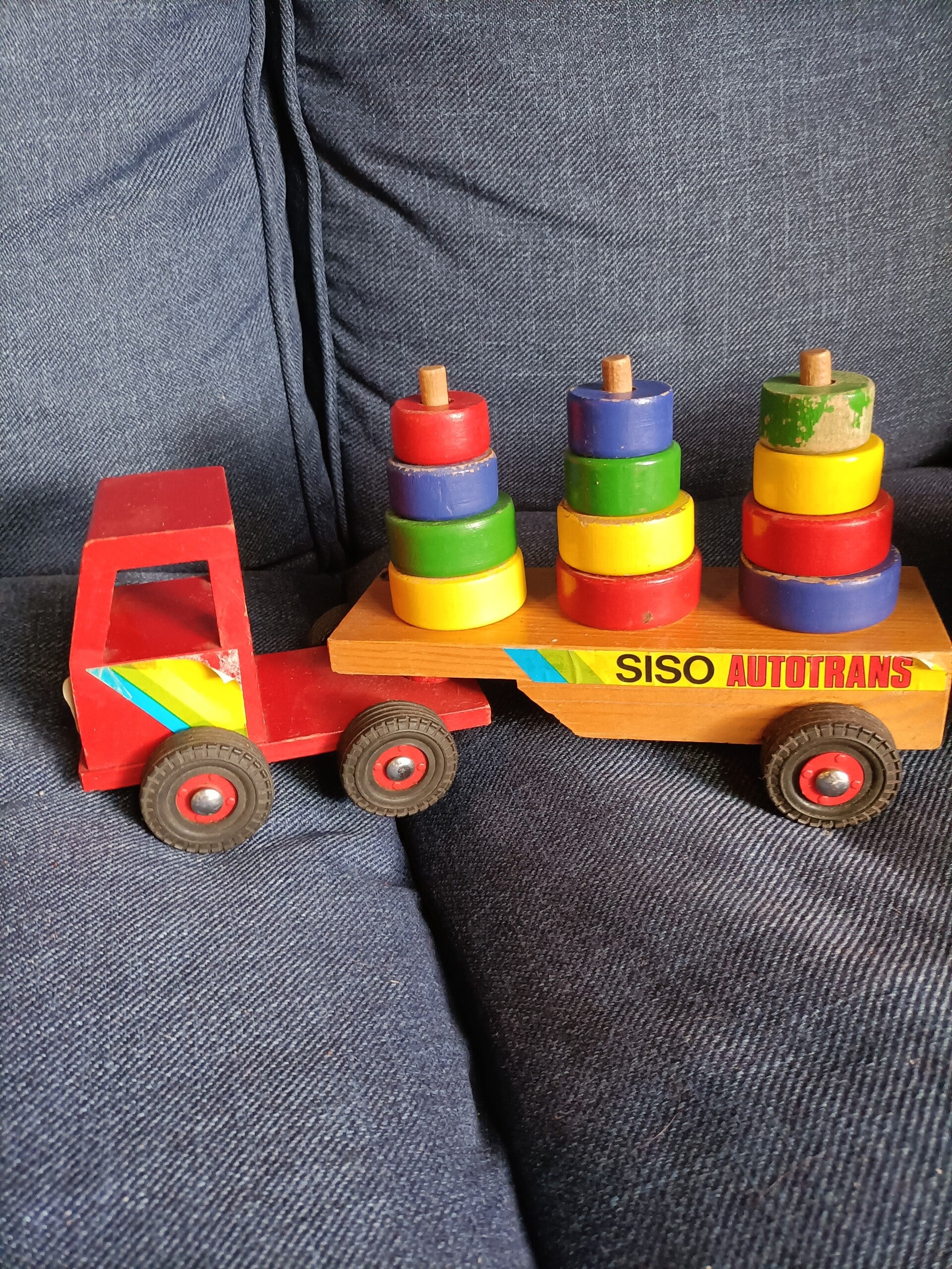 Houten vrachtwagen met gekleurde vormenstoof, inclusief. Doos