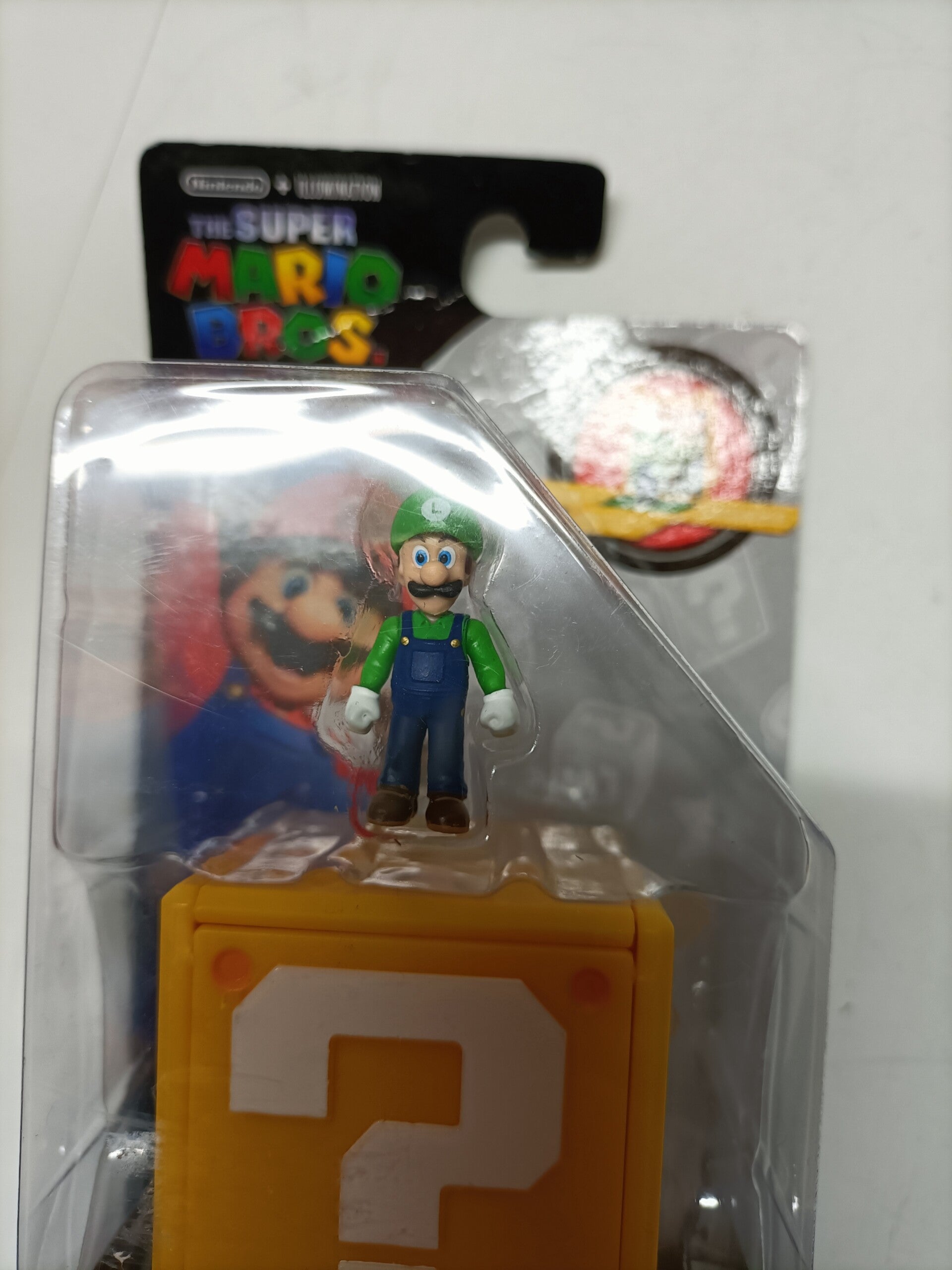 De achterkant van de vragenbox heeft het thema van de film Super Mario Bros the movie