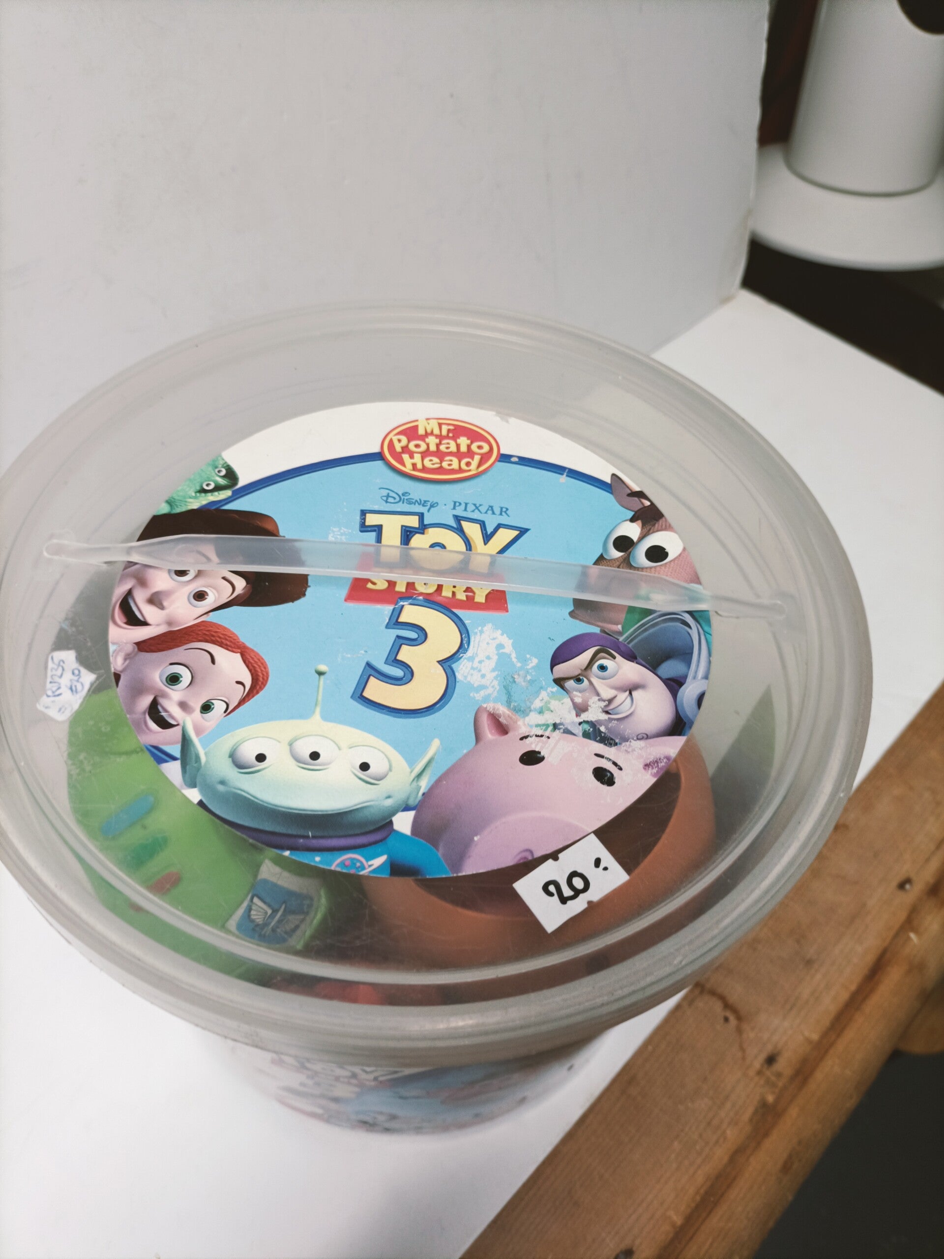 Toy story uitvoering van Mr Potato head, in een kunststof emmer