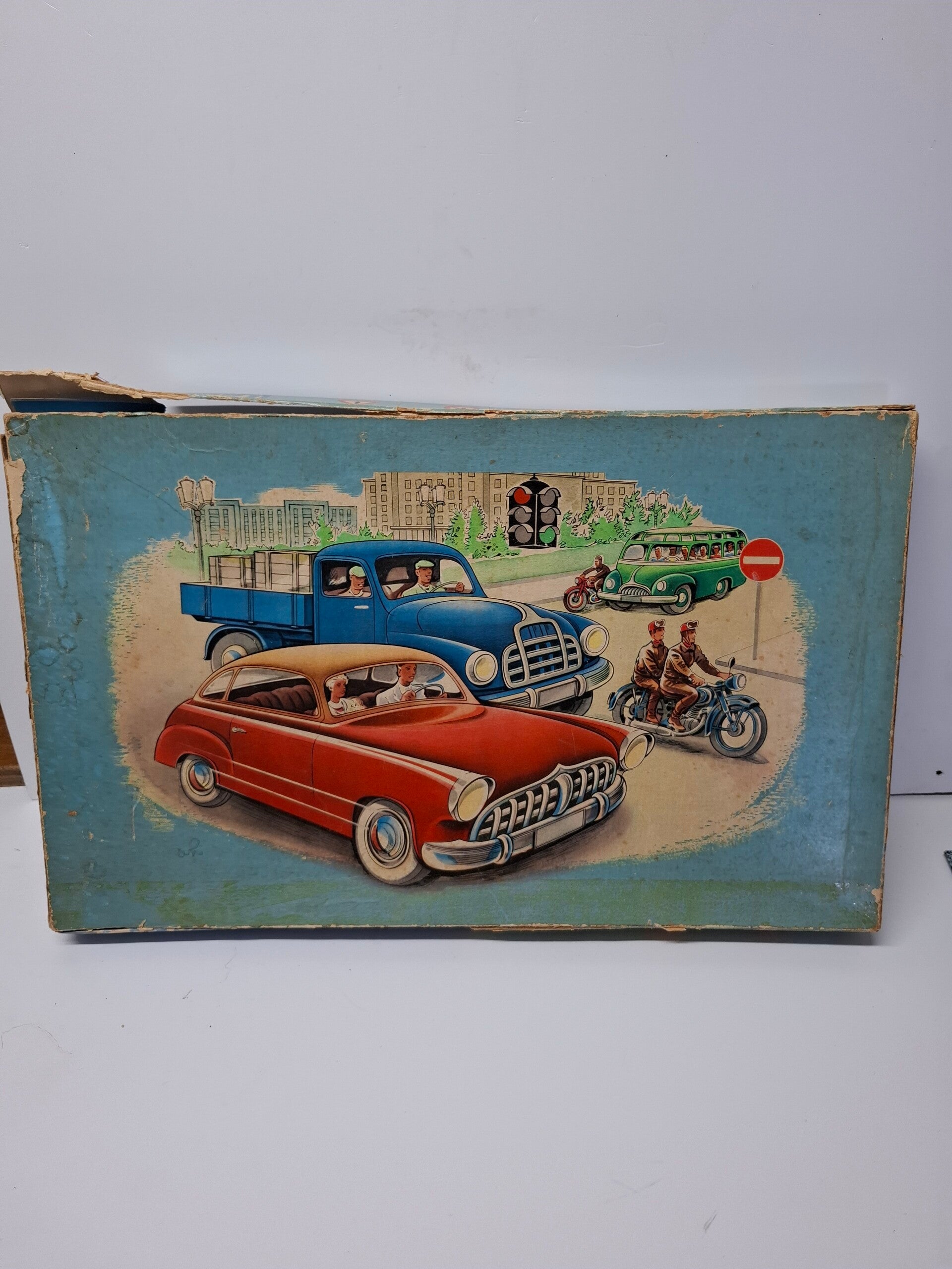 Oude versie van het verkeersspel, doos is in matige staat, voor 2 tot 4 spelers.