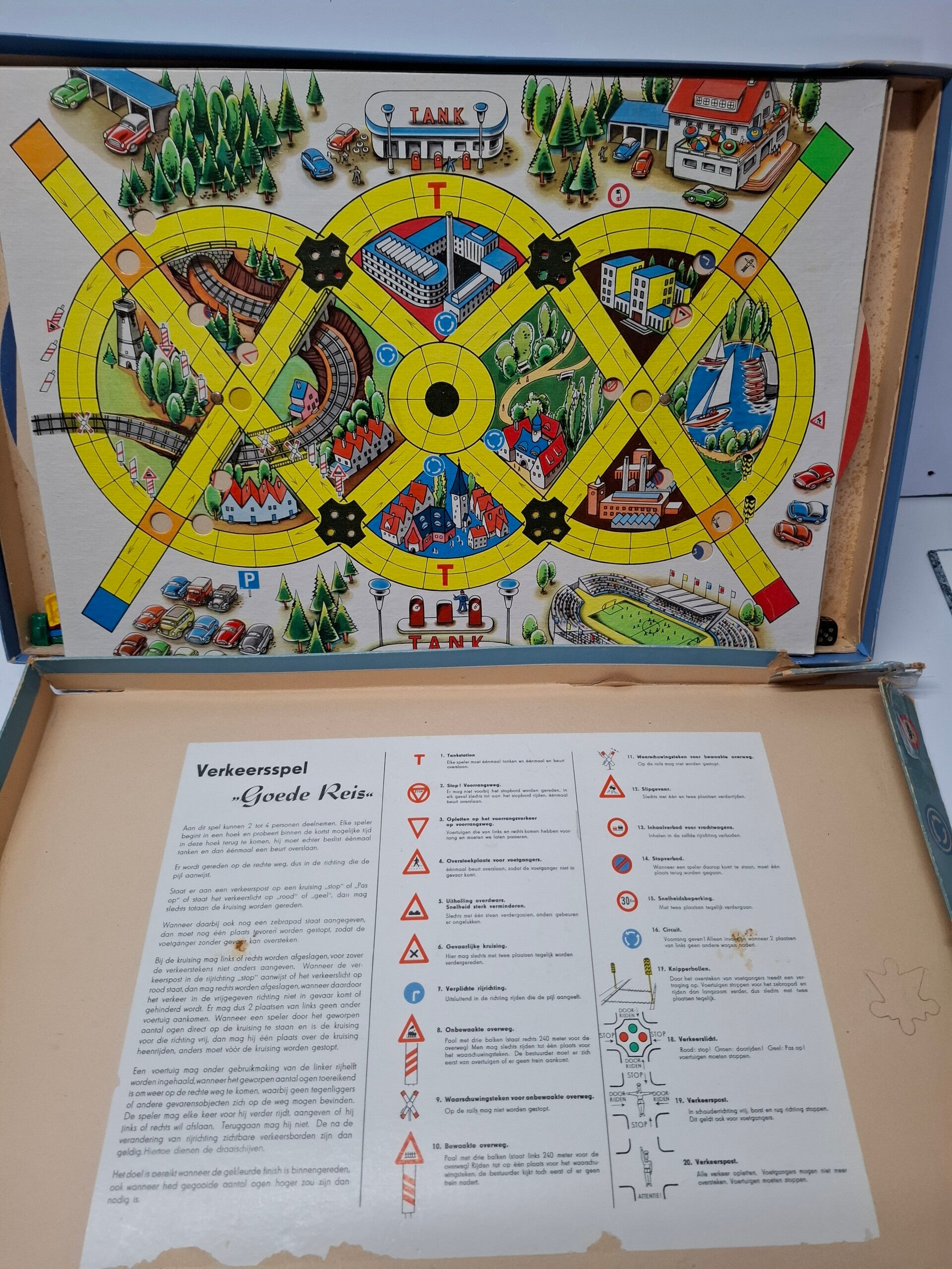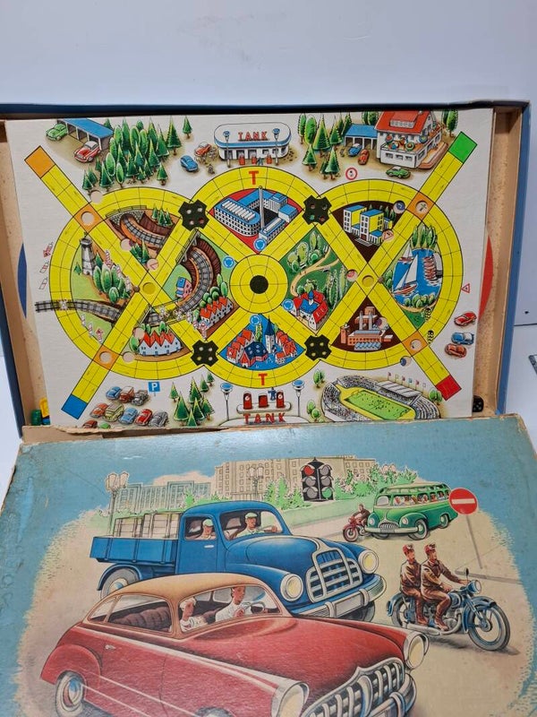 Oude versie van het verkeersspel, doos is in matige staat, voor 2 tot 4 spelers.
