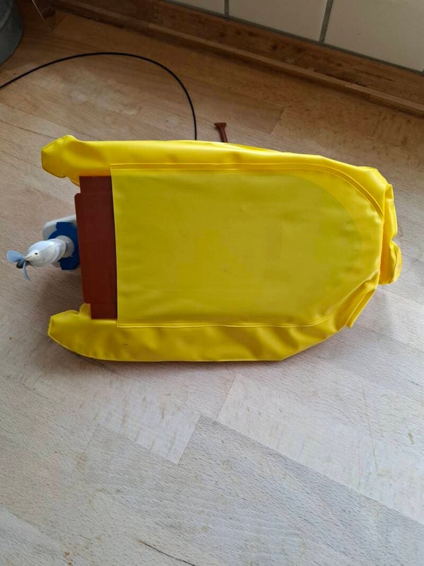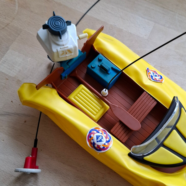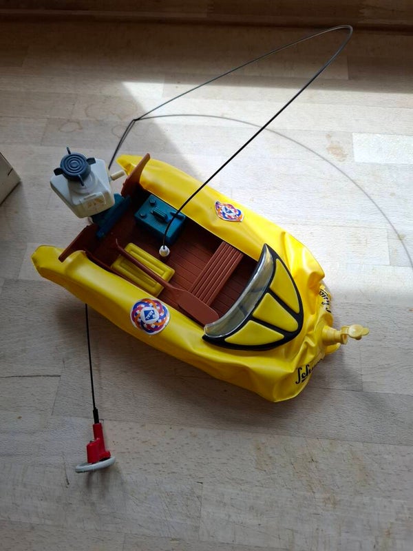 Schuco rubberboot, opblaasbaar.met opwindbare buitenboordmotor.