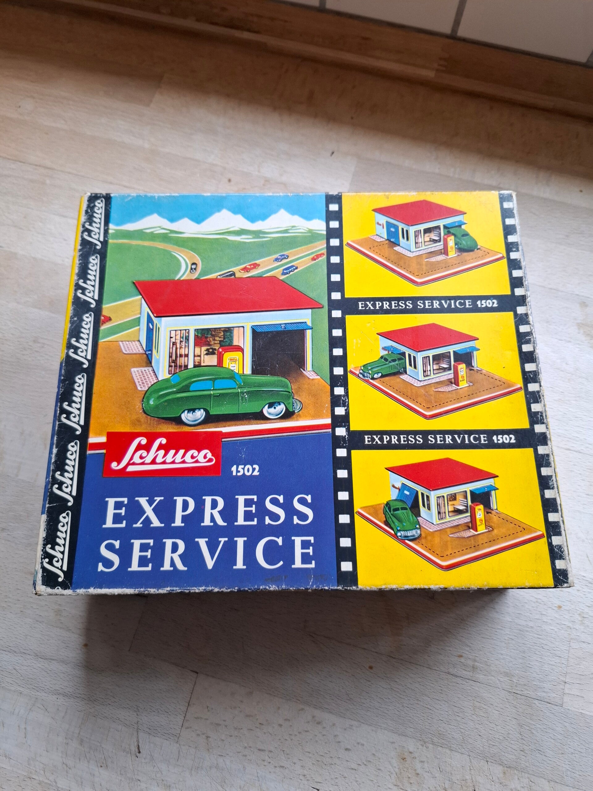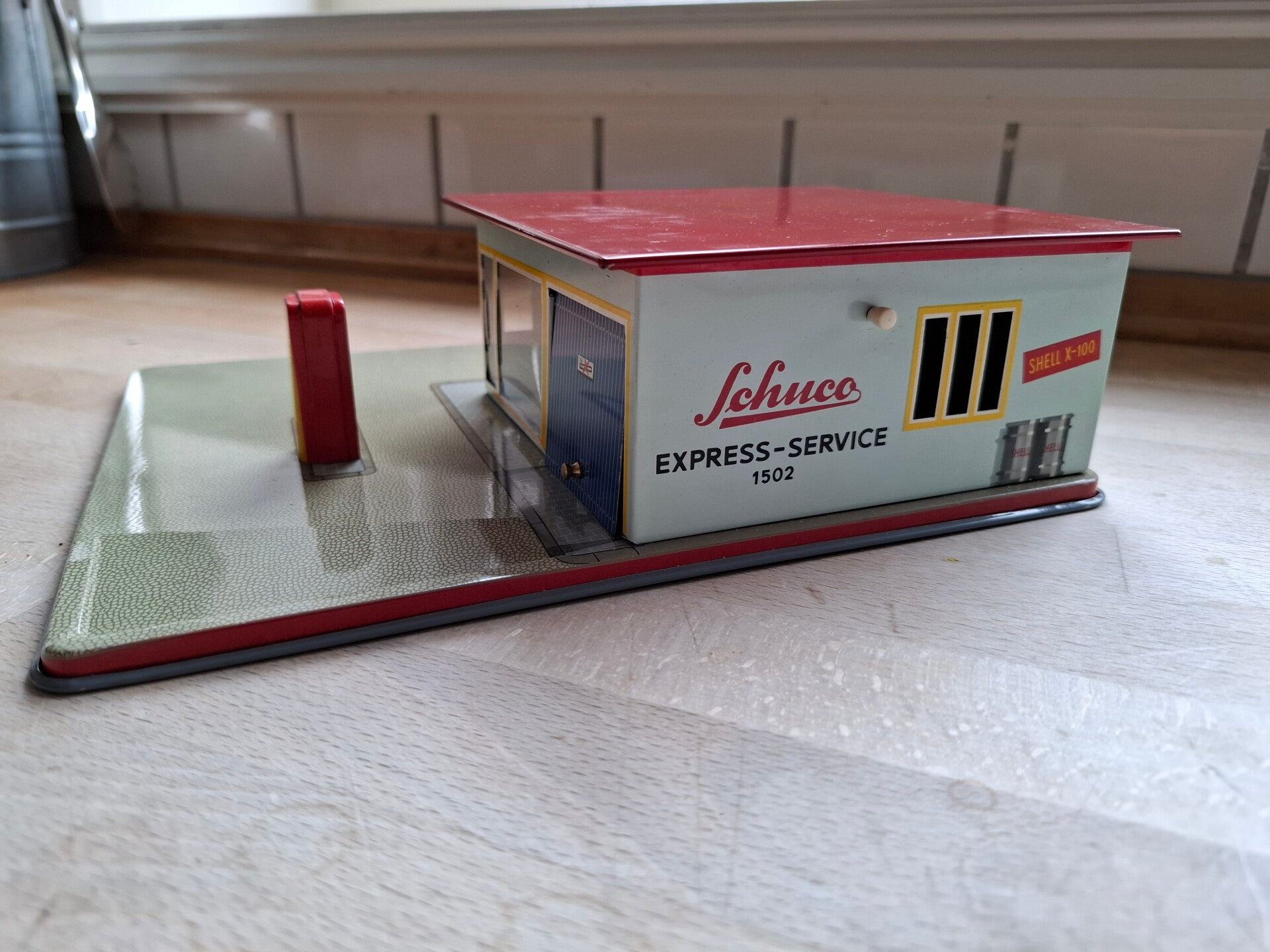 Blikken service station, schuco express. Zo goed als nieuw in originele doos.