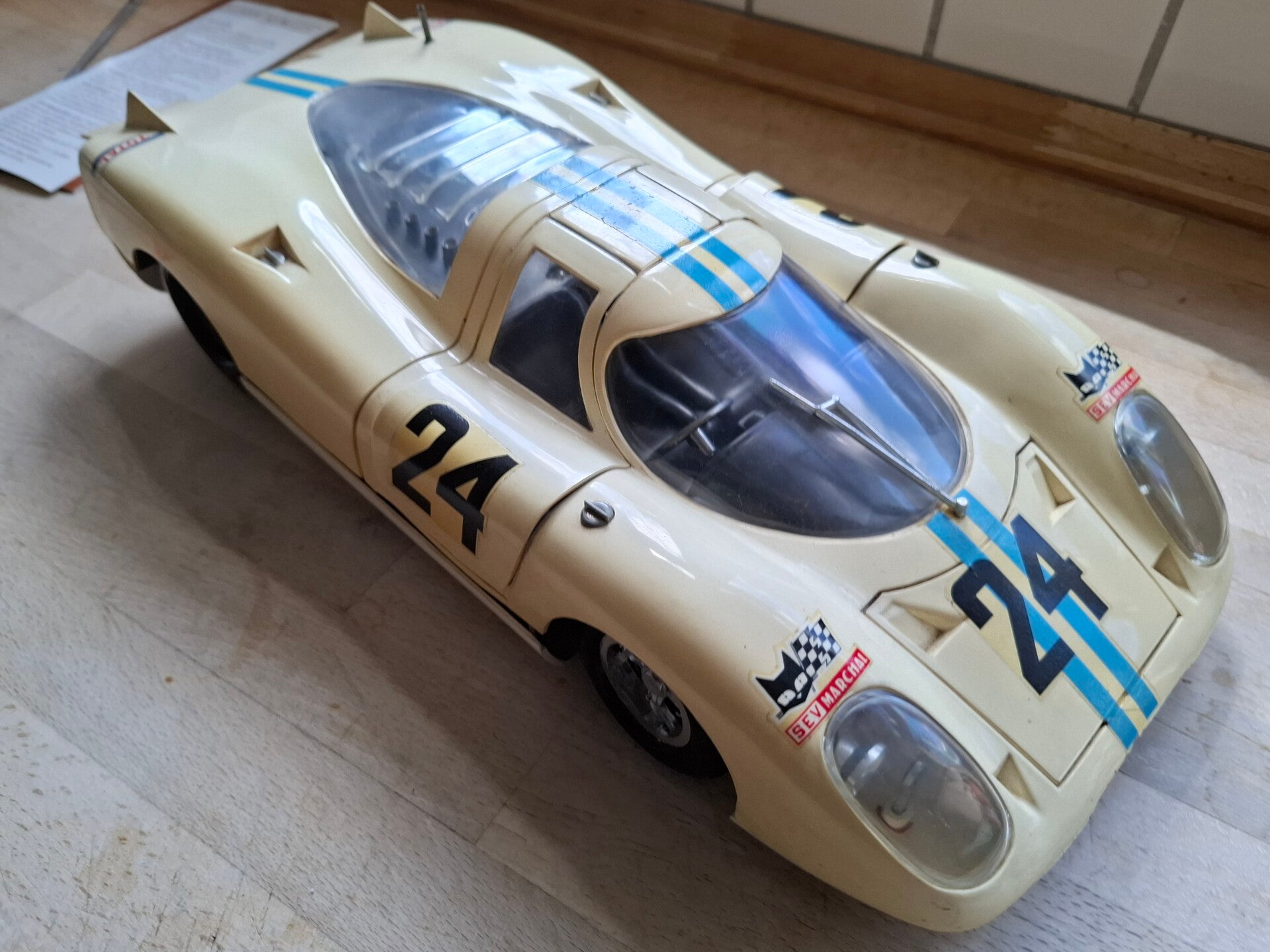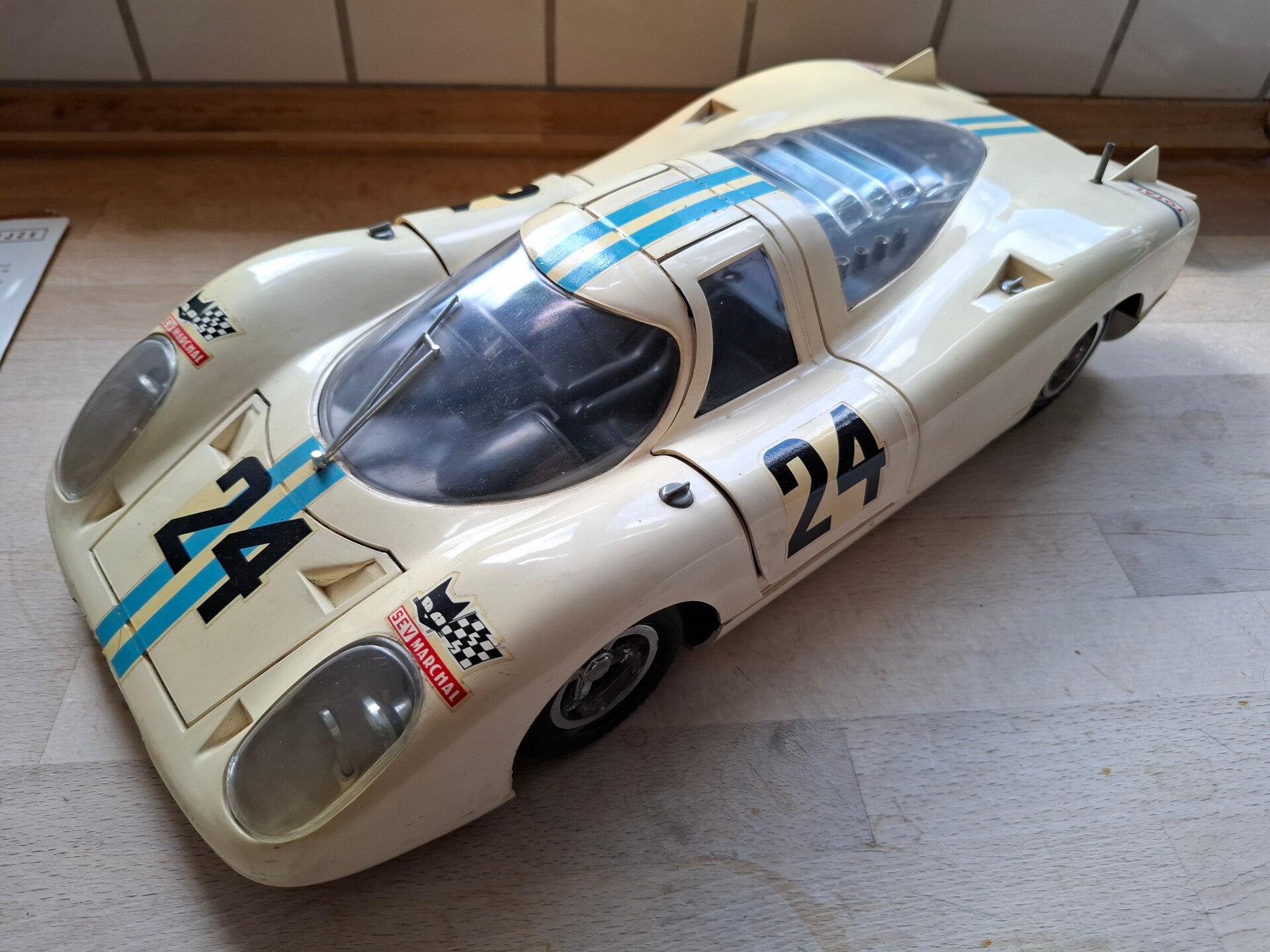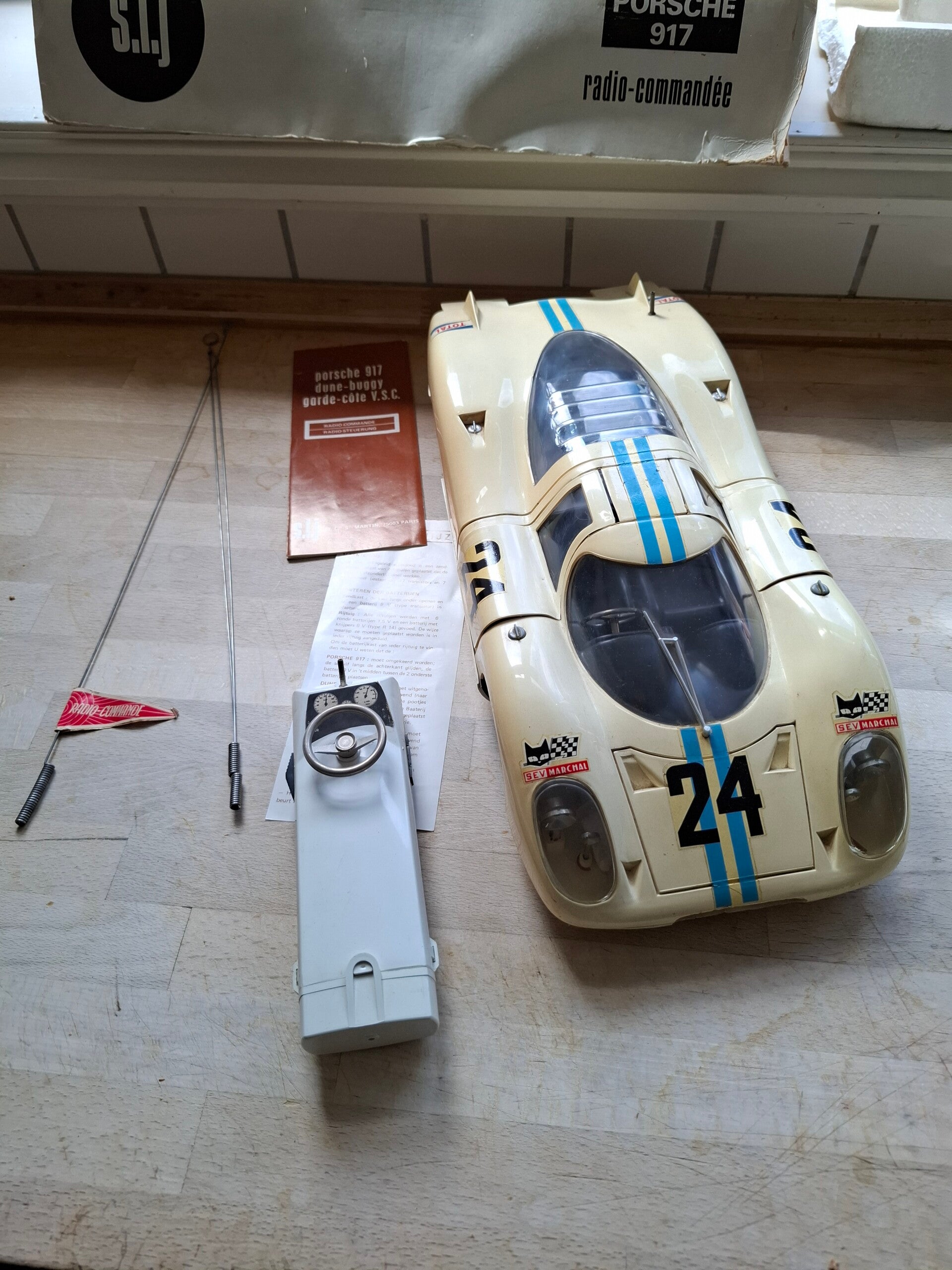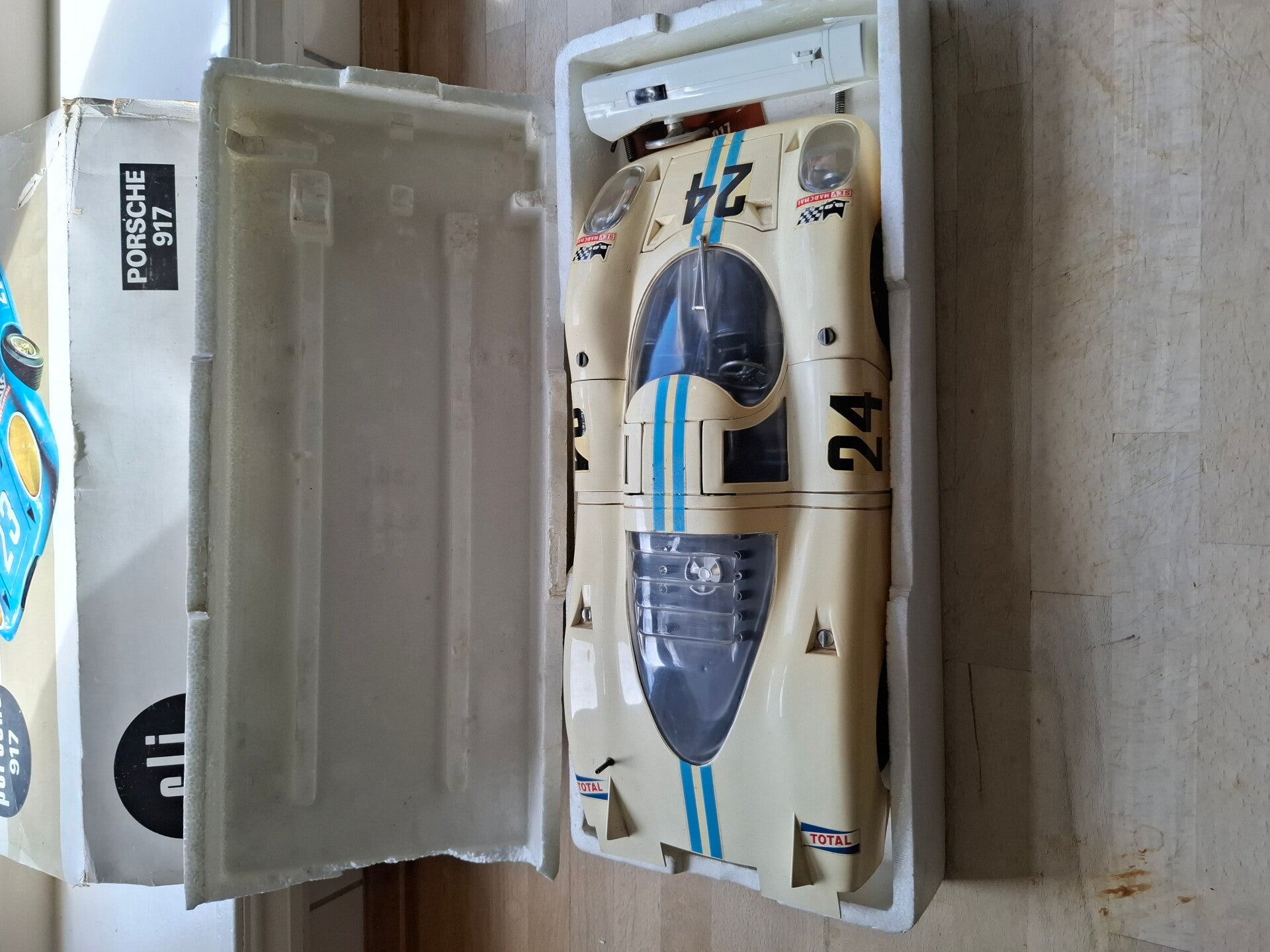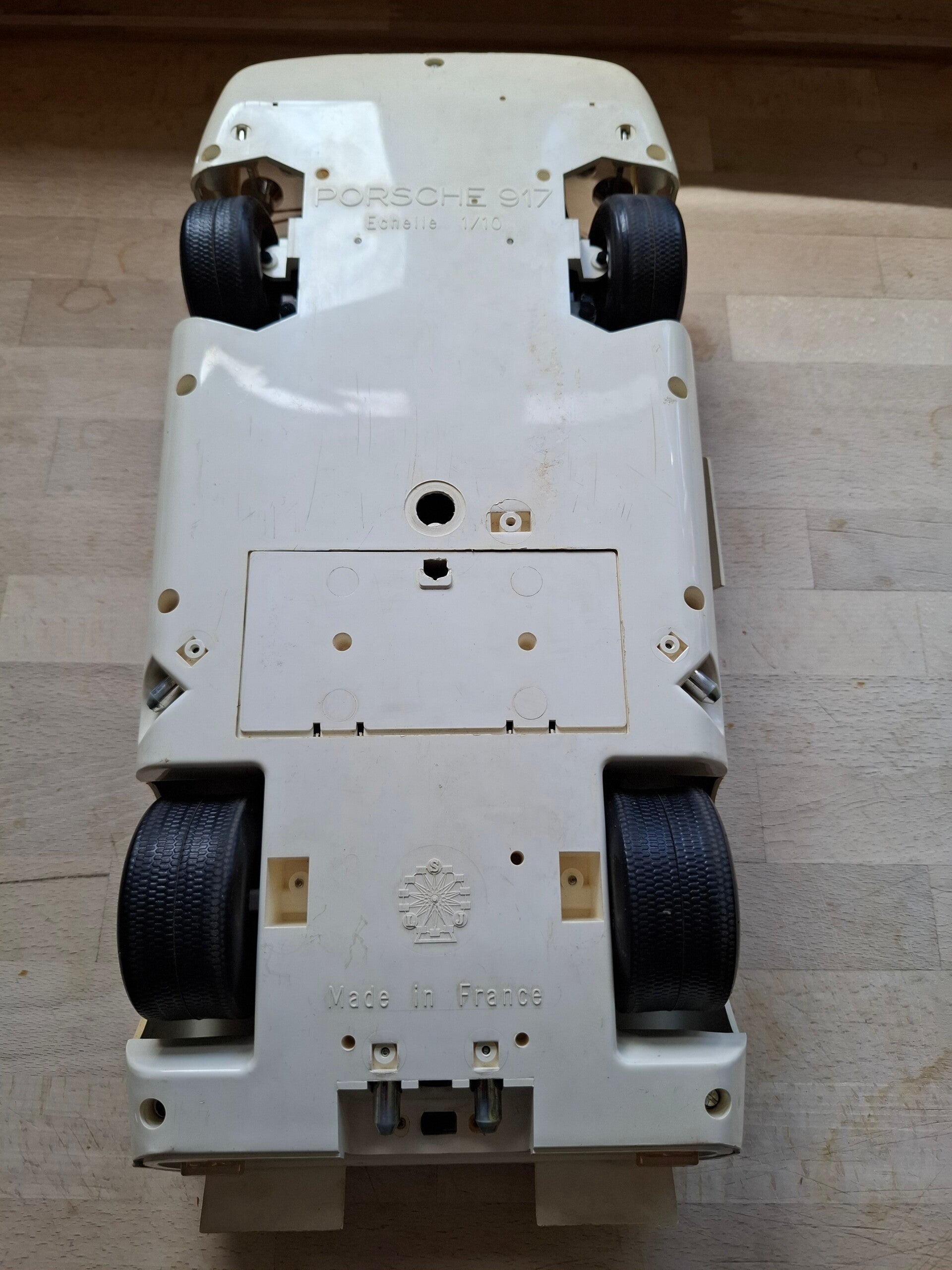 Witte Porsche 917, afstandsbestuurbaar met vleugeldeuren, van het franse merk SLJ. Schaal.1 op 10.