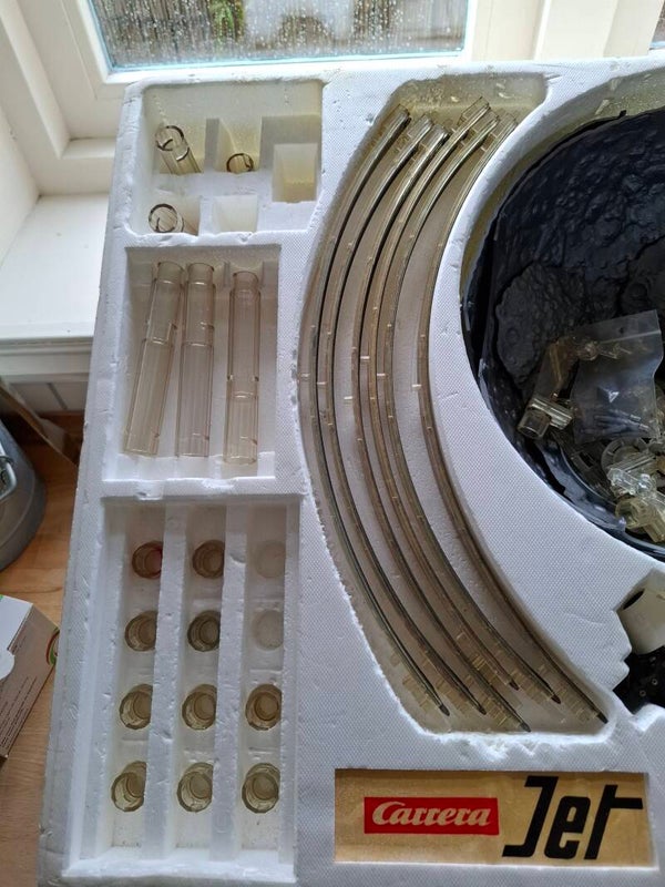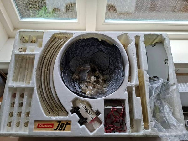 De Carrera Apollo Jet racebaan is een echte klassieker uit de hoogtijdagen van mechanisch speelgoed. Deze set is afkomstig uit een particuliere collectie en bevat meerdere originele onderdelen uit de legendarische Apollo Jet-serie van Carrera.