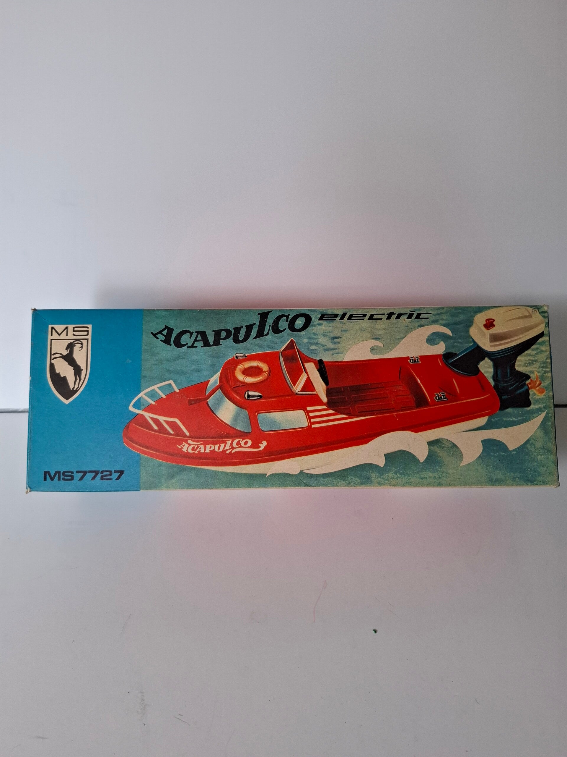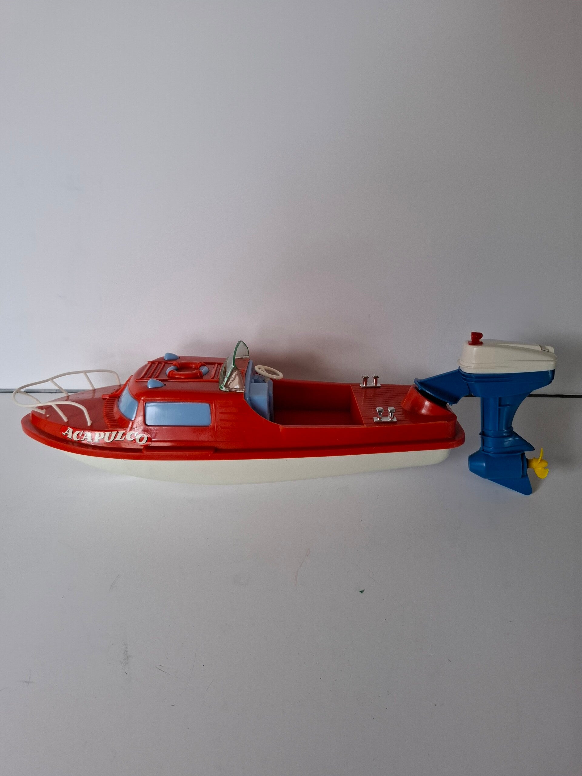 Speedboot acapulco electric, met losse buitenboordmotor opklikbaar, alles geheel kunststof. Verkeerd in nieuwstaat. Motor is werkend.