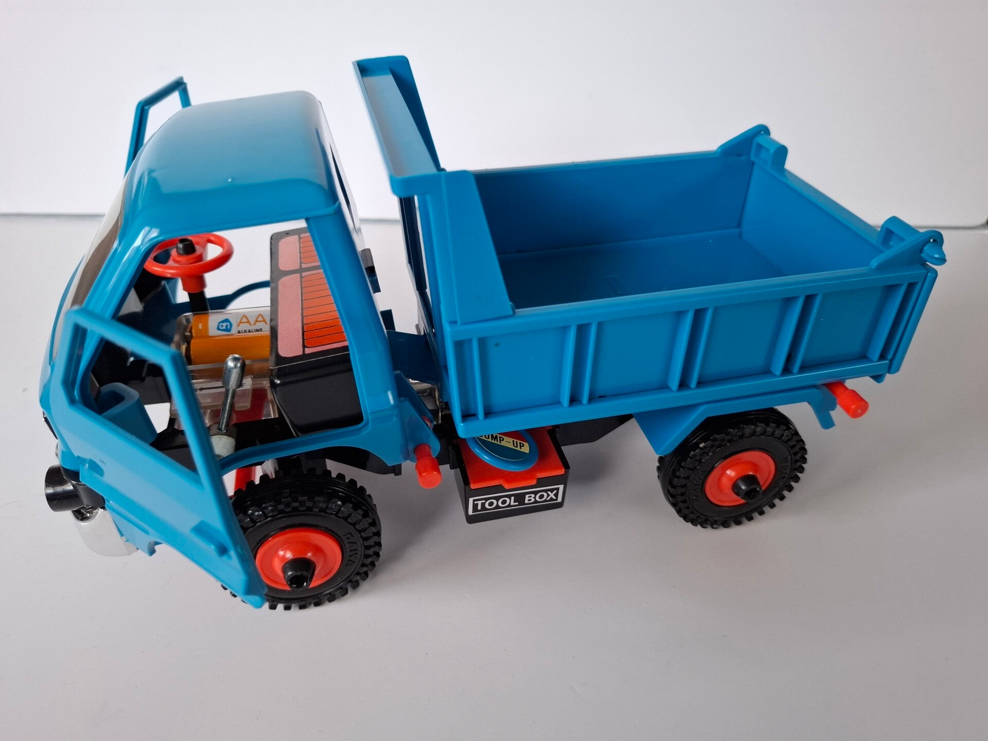 A top addition to any collection. The model comes in new condition. It's old store stock and was never used or played with! It has always been in my collection after i found it in an old toy store!. You will love it! Bright and shining! It will make a wonderful appearance into your collection. The model comes Battery Operated and works fine. The box looks very good, it's complete. No discoloration. Just some minor surface rubbing wear and some dents. A great item to own! These are the models which show up in Museum these days. They are becoming the rarest toys of the past. This is your chance to lay your hands on a very special model in great shape. Be keen on this treasure!