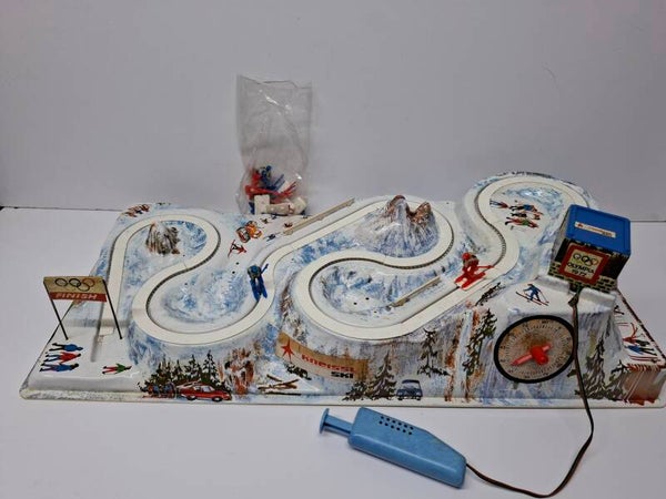 Zeer mooie kunststof baan met skiers, aandrijving via batterij en controller (zoals bij de autoracebaan) niet getest, compleet met stickers