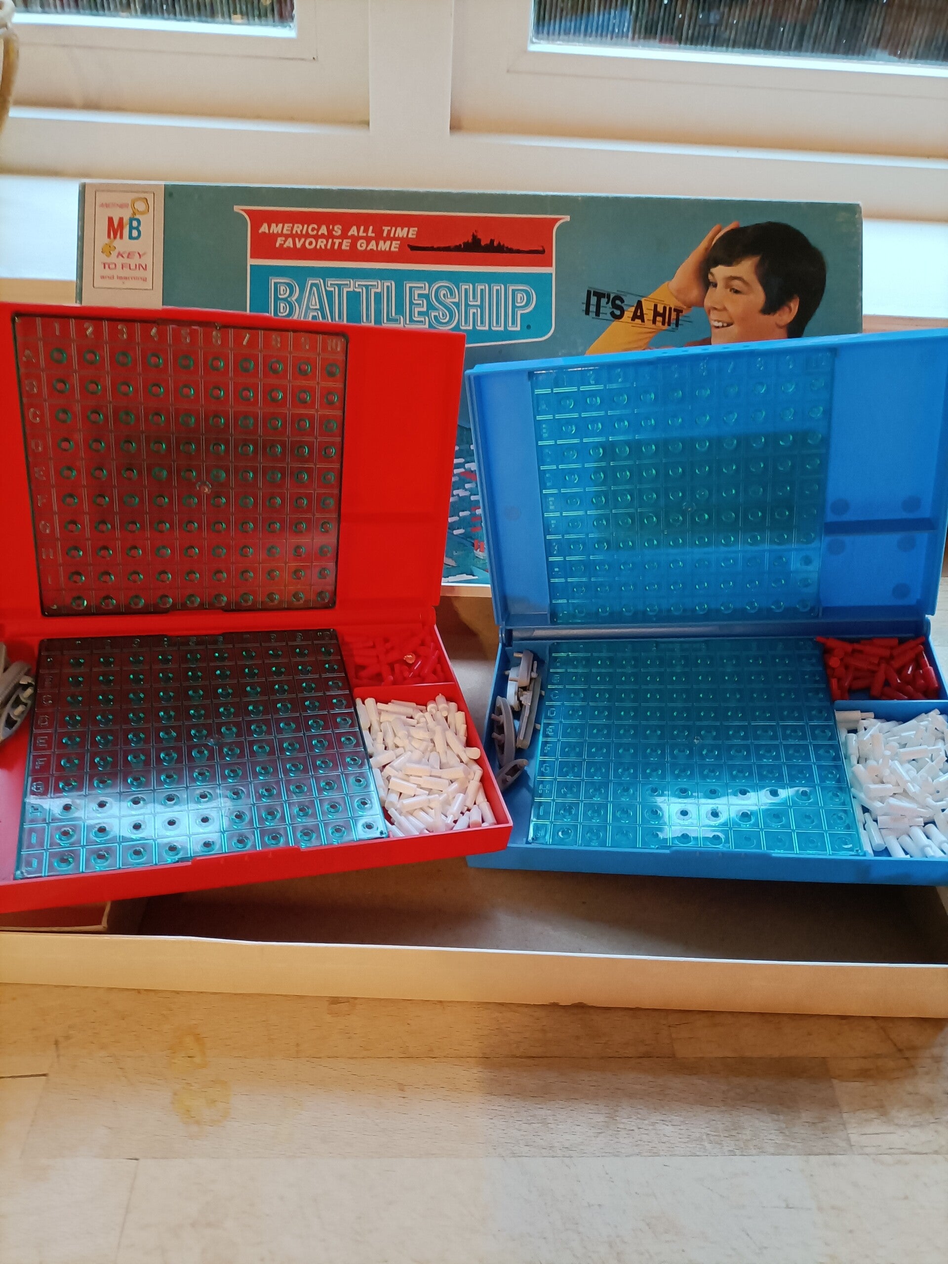 Dit vintage spel is Battleship. Deze versie werd uitgebracht door Milton Bradley in 1967. Dit spel is voor kinderen van 8 tot volwassenen. Het doel van het spel is om al je tegenstanders schepen tot zinken te brengen. Dit spel is in uitstekende staat. Uit de doos: "Battleship is het oude favoriete marinespel waarin twee spelers elkaars verborgen schepen tot zinken proberen te brengen. Het is handig verpakt in op zichzelf staande stevige plastic gamekits, compleet met opbergvakken voor de kleine schepen en markeringspennen. Het kan binnen enkele minuten speelklaar worden ingesteld en snel worden opgeborgen wanneer het niet in gebruik is. In dit moderne, compacte voor,, BATTLESHIP zal aangenaam entertainment voor het hele gezin zorgen." Dit is een geweldig cadeau of een spel om thuis te spelen!