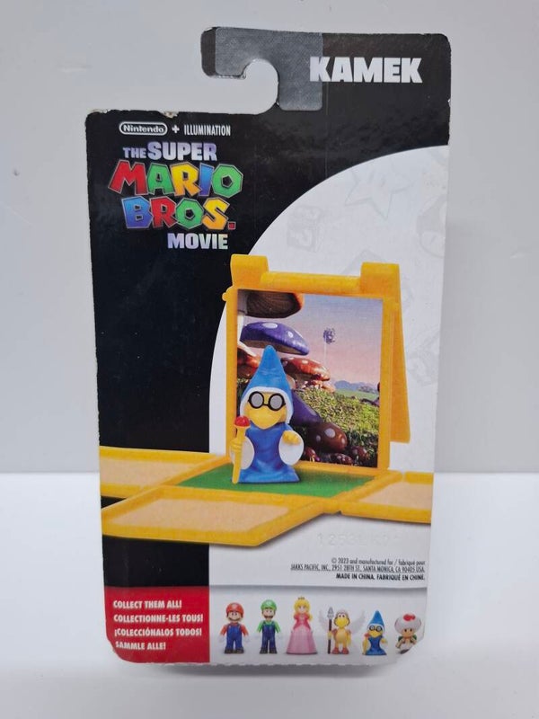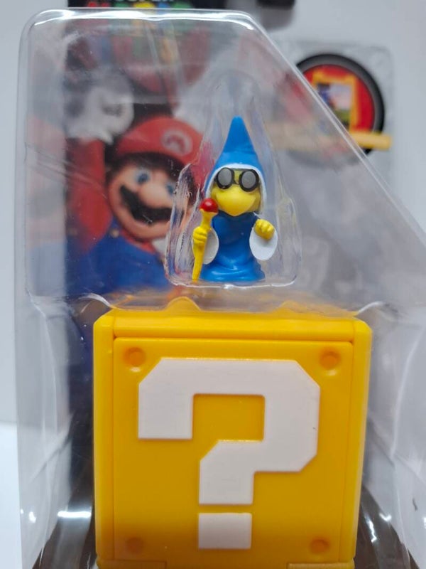 De achterkant van de vragenbox heeft het thema van de film Super Mario Bros the movie