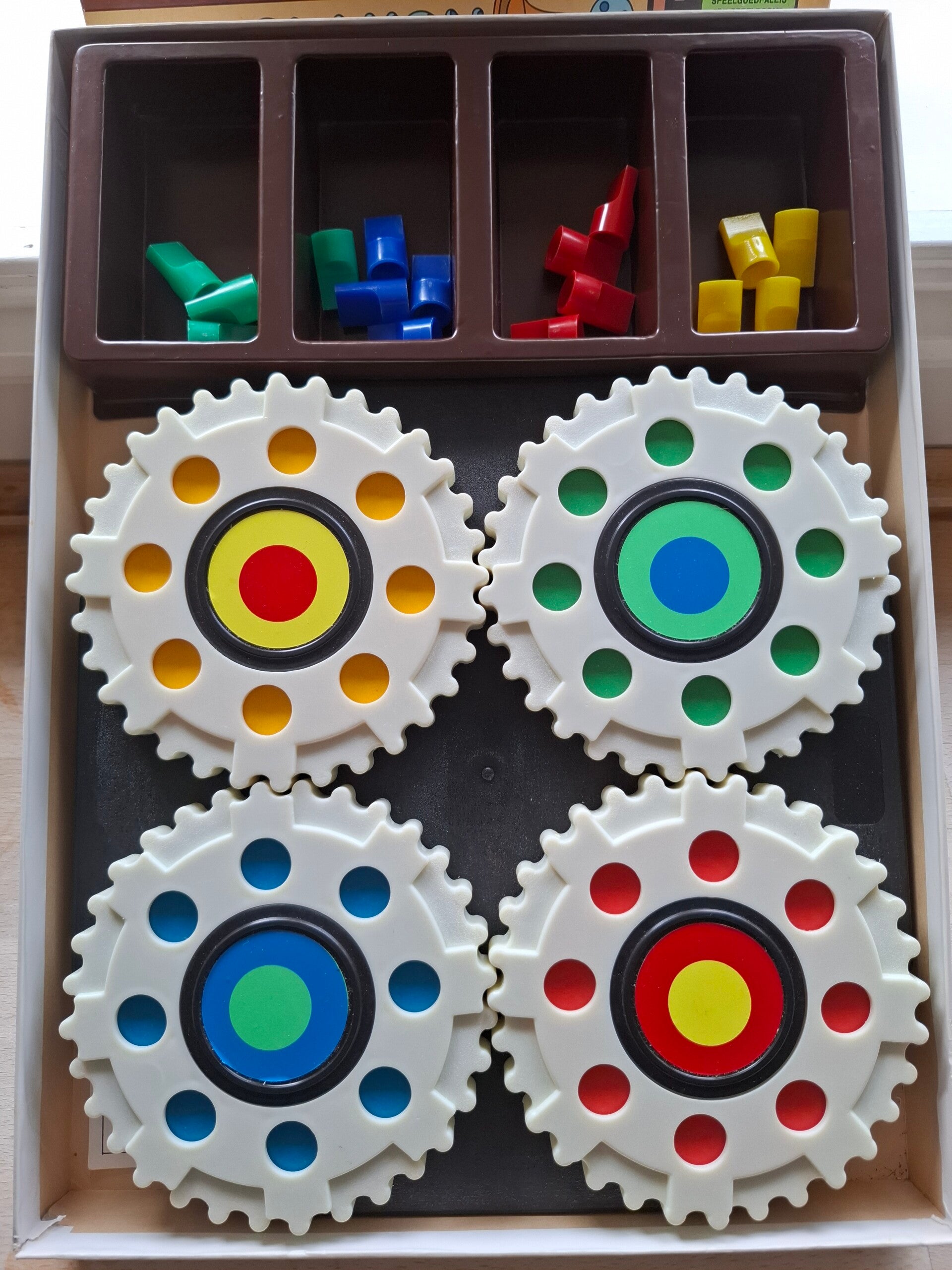 - Het doel van het spel is om de draaischijfjes te draaien en de spelfiguren te verplaatsen naar het diagonaal gelegen draaischijfje.