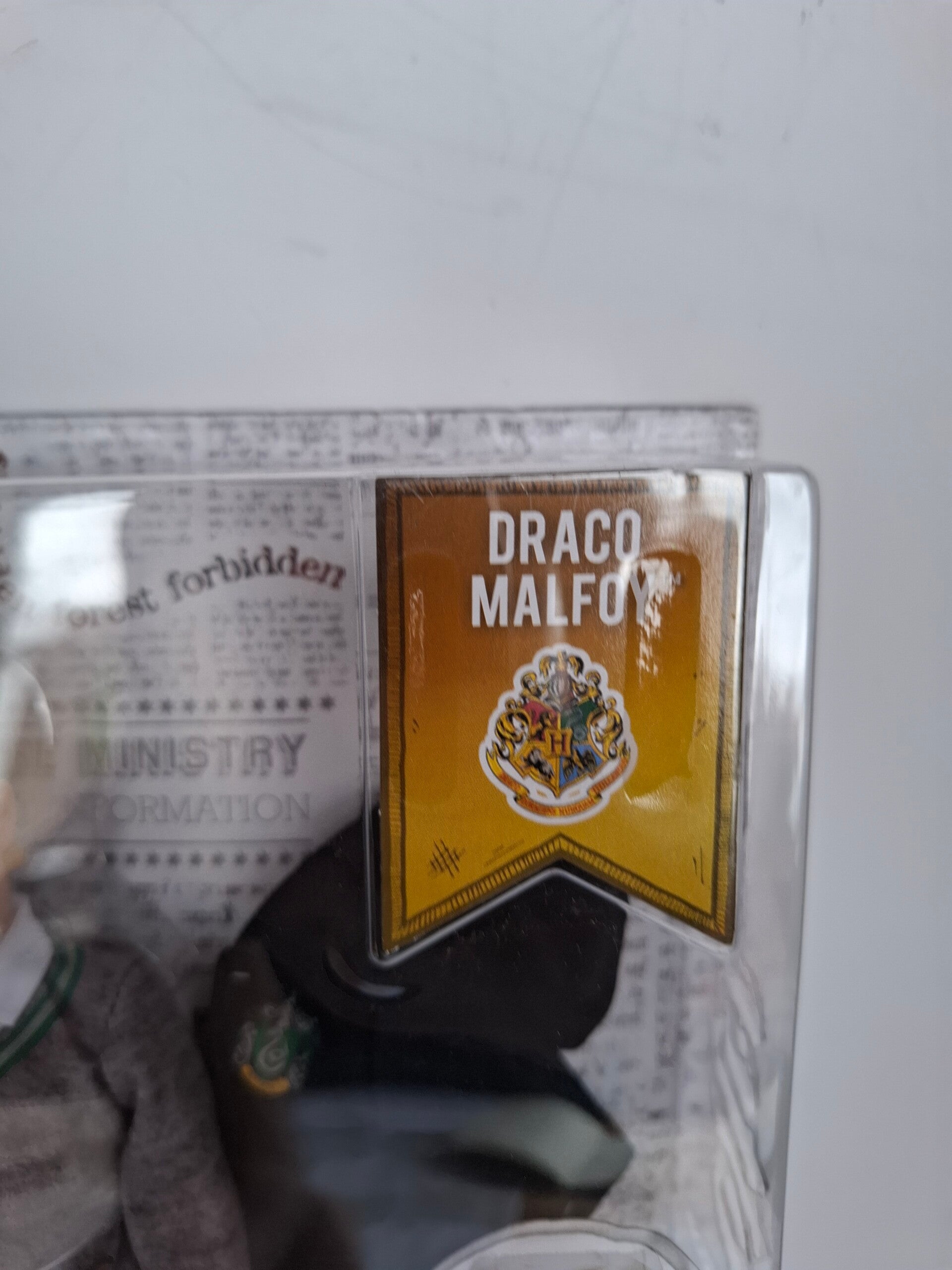 De pop wordt geleverd in een verpakking met een afbeelding van Draco Malfoy en de tekst "DRACO MALFOY" en "Harry Potter".