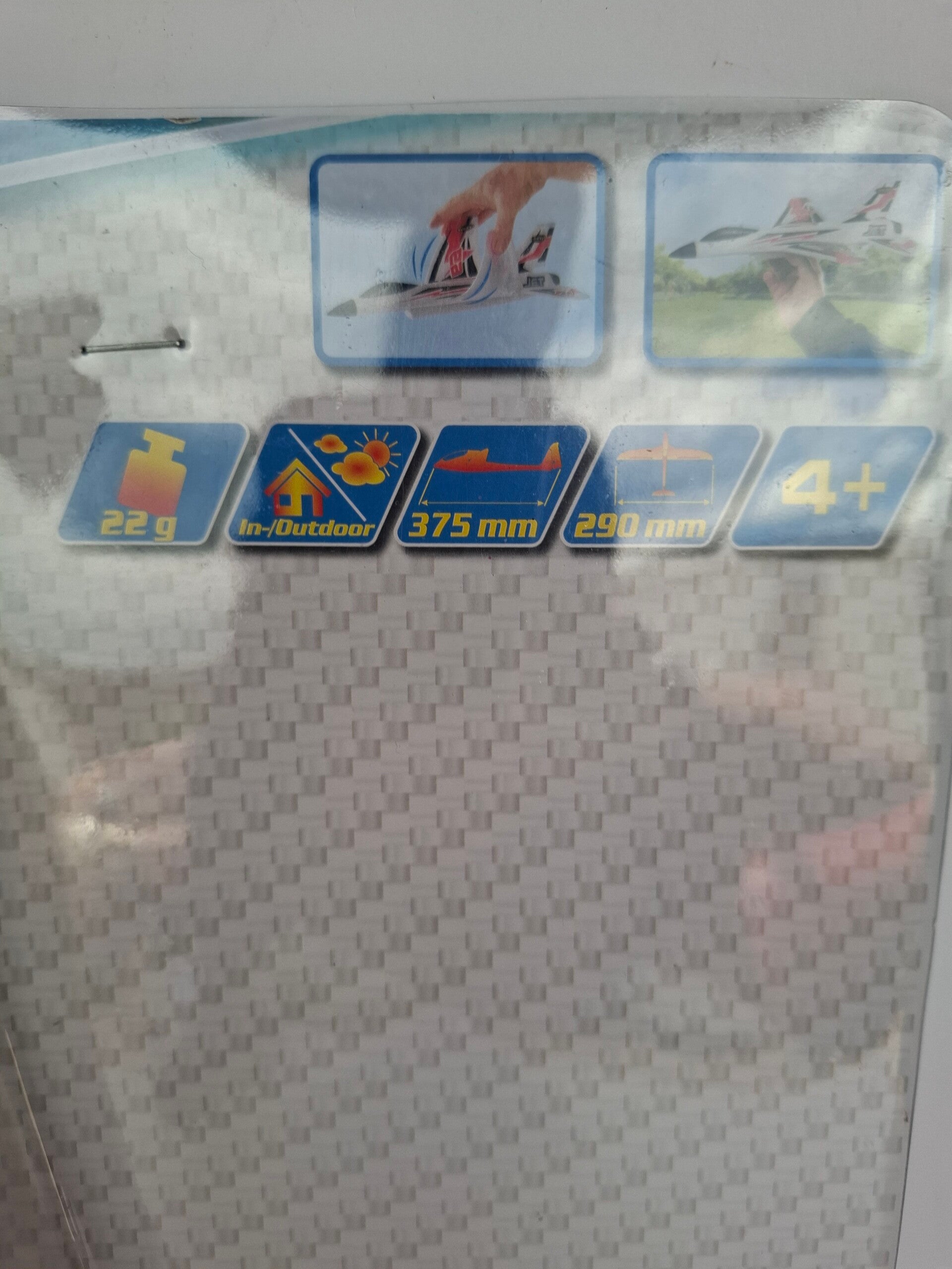 Dit is een Carson Wurfgleiter Jet, een zweefvliegtuigmodel dat is ontworpen voor handmatig lanceren.