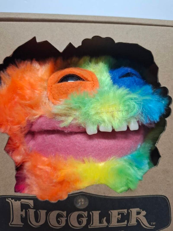 Regenboog ugly knuffel met tandjes, Fuggler snuggler edition.