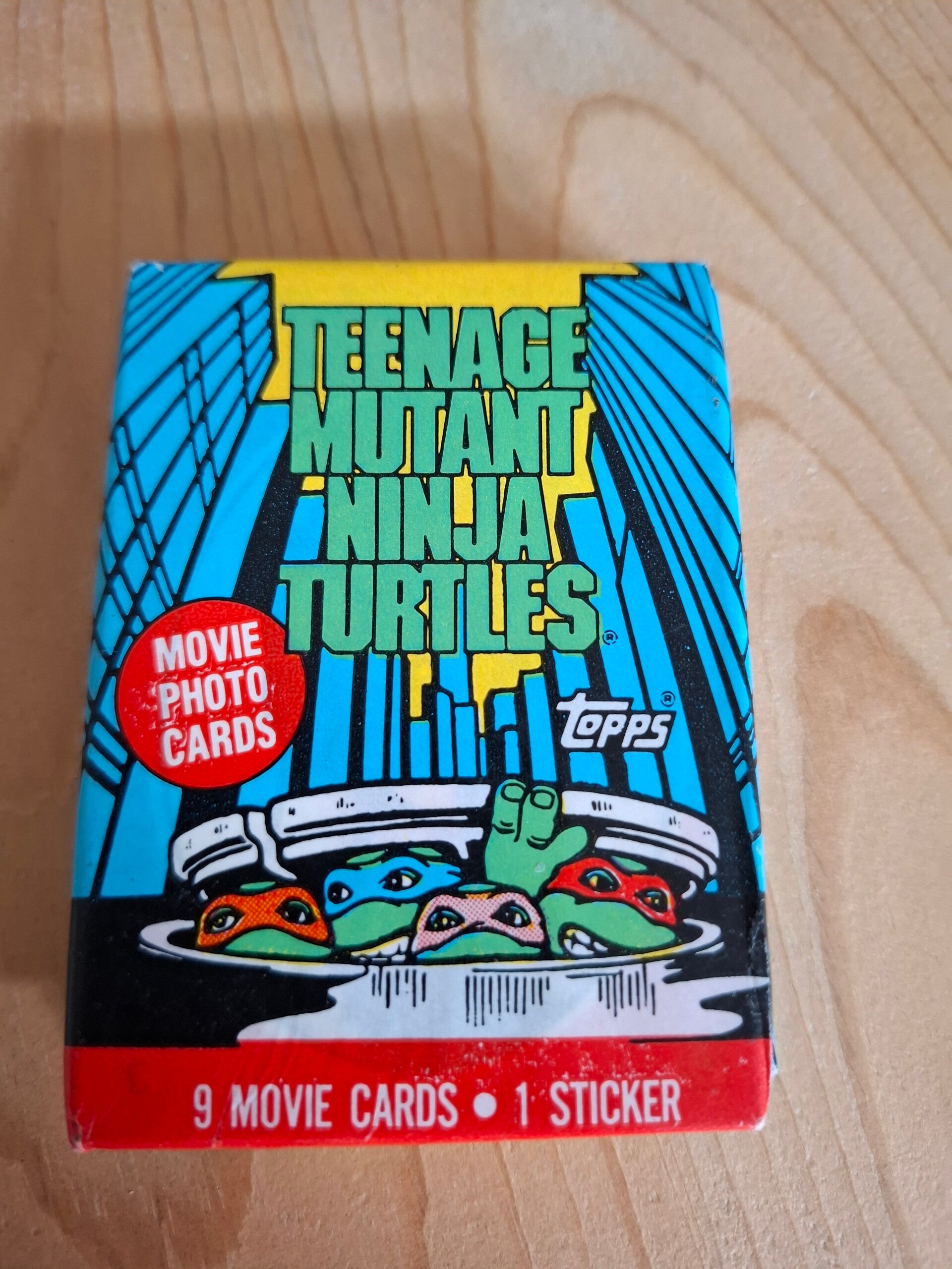 Een pakje uit de "1990 Topps Teenage Mutant Ninja Turtles Movie Cards" set.
