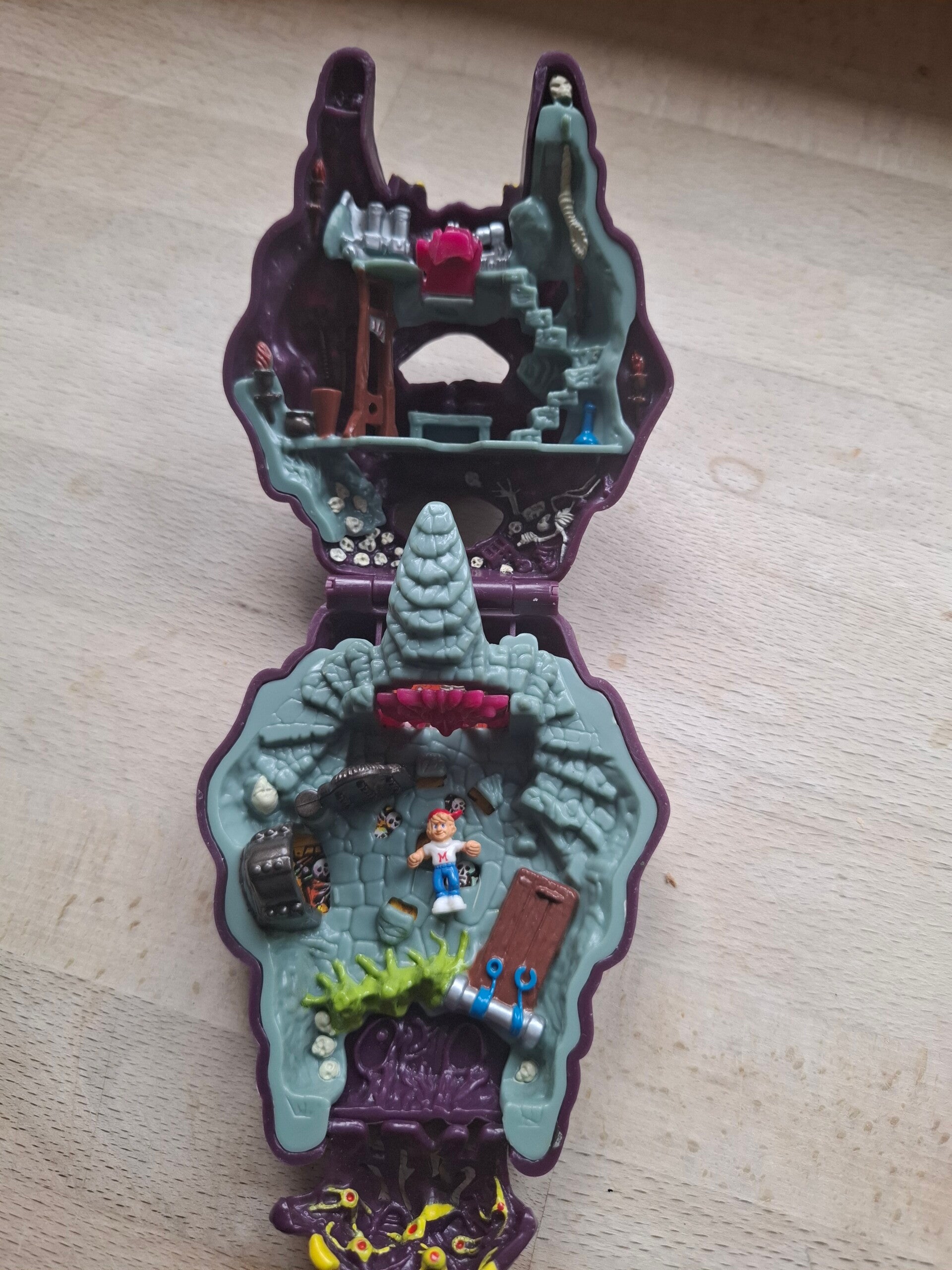 De speelsets, zoals deze "Horror Head," waren vergelijkbaar met de Polly Pocket-lijn, maar dan gericht op jongens.