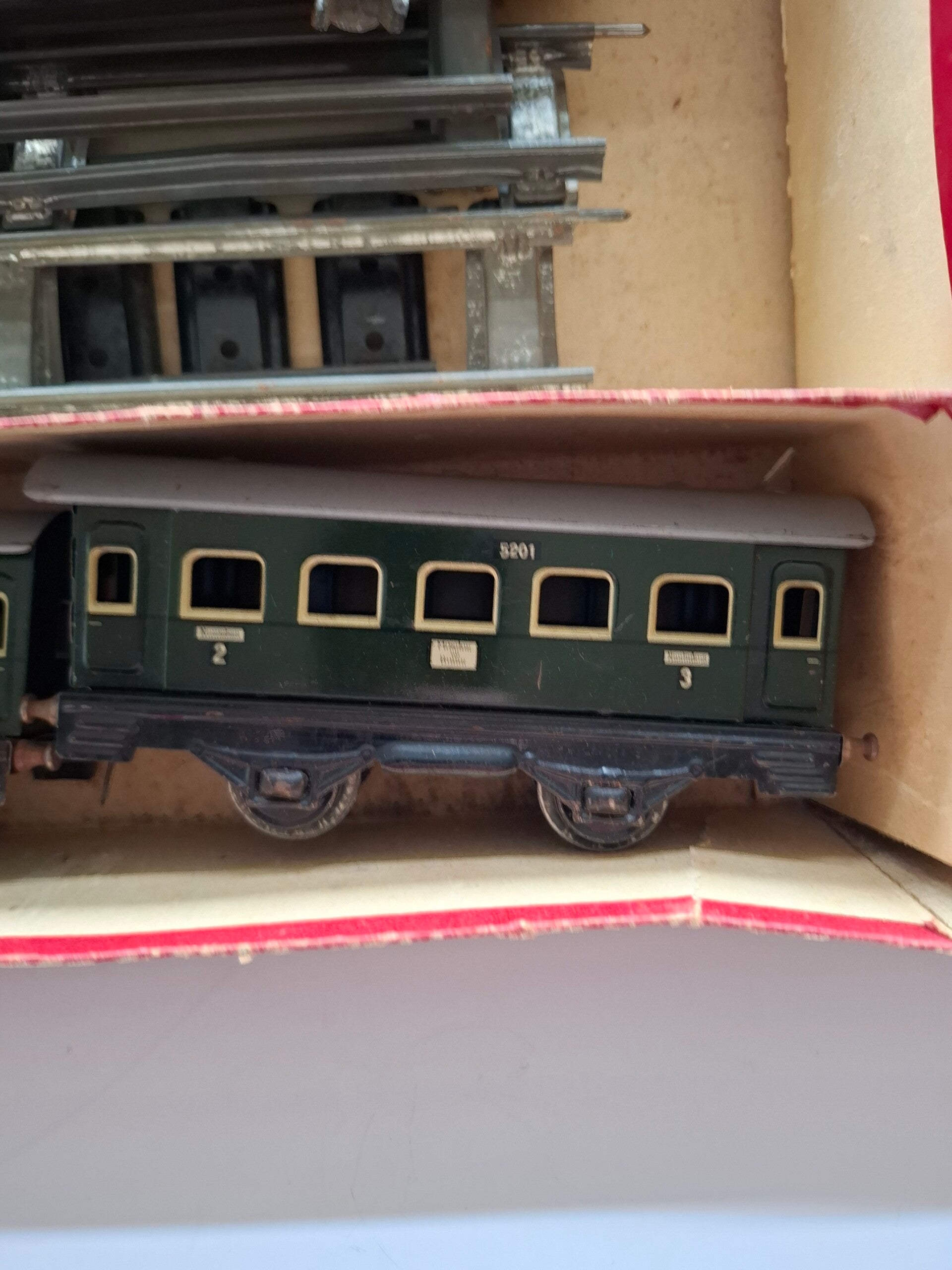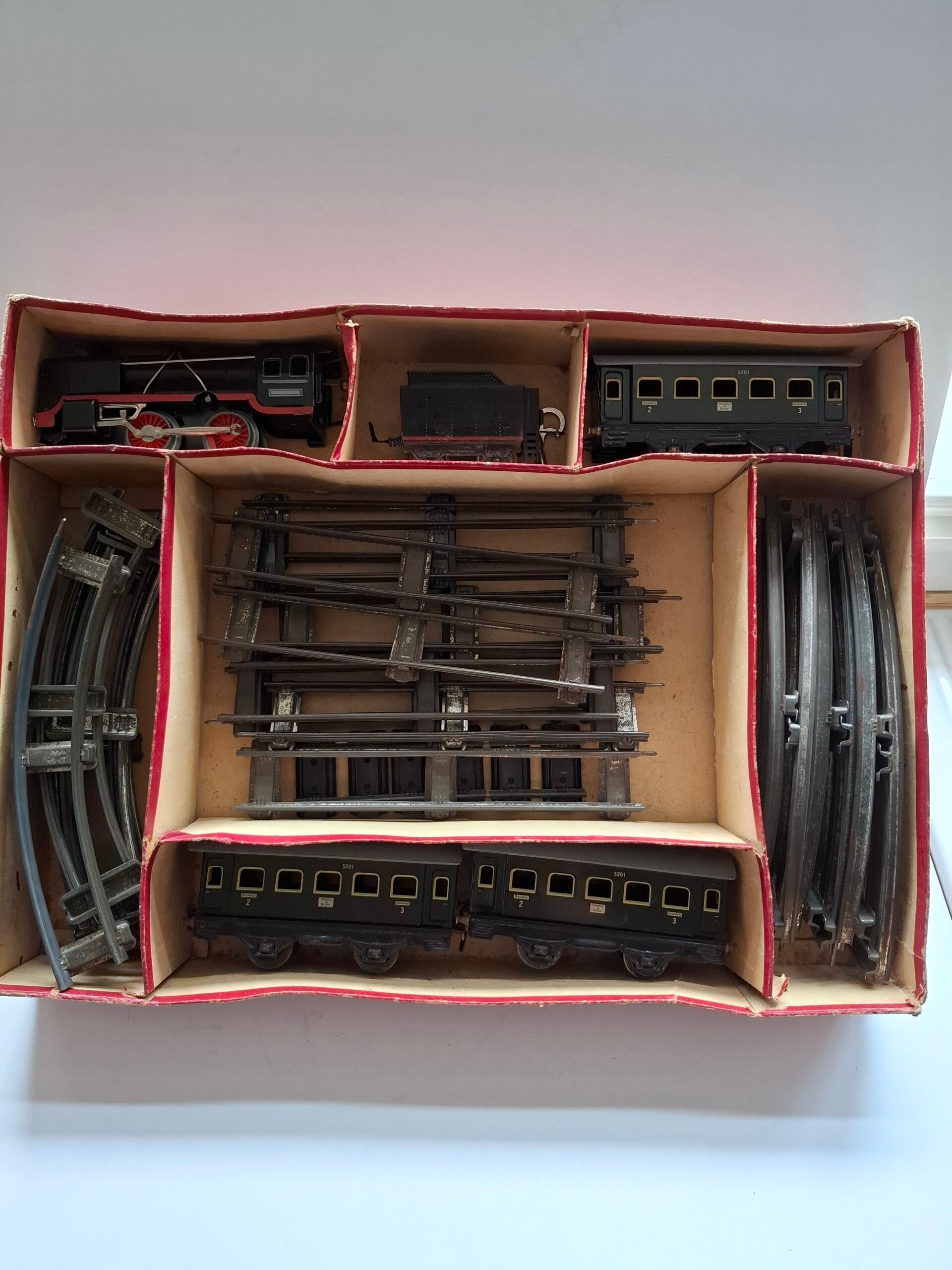 een vintage opwindbare modeltrein van het merk in schaal 0. informatie