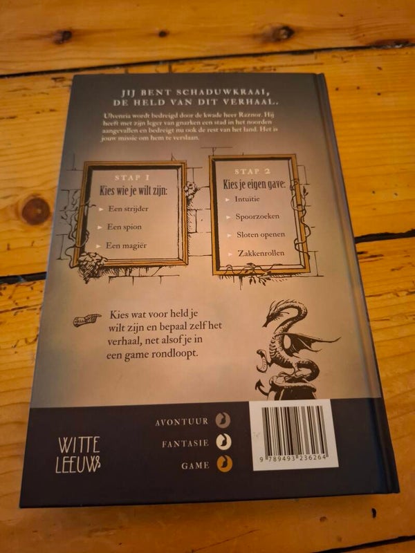 - Het is een "kies-je-avontuur" verhaal waarin de lezer de rol van Schaduwkraai aanneemt en keuzes maakt die het verhaal bepalen.