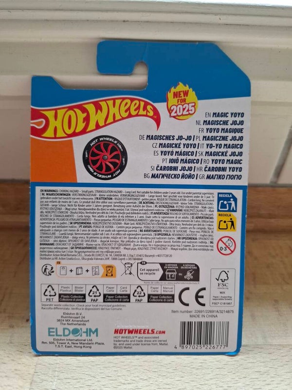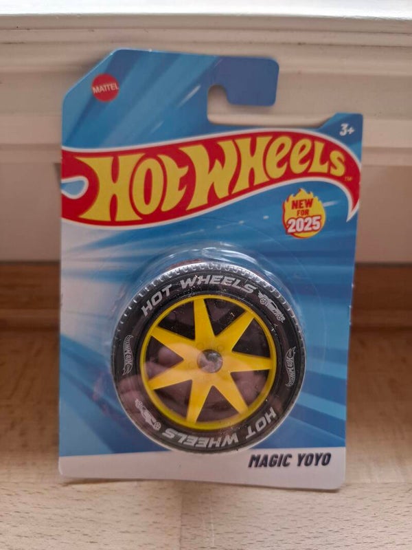 Een Hot Wheels Magic Yoyo, een speelgoedjojo met een ontwerp in de stijl van een autoband.