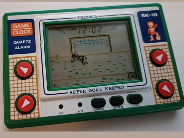 Dit is een Tronica SK-10 Super Goal Keeper, een draagbare LCD-game uit 1983. Het spel is een klassieke retro-handheldgame en een verzamelobject.
