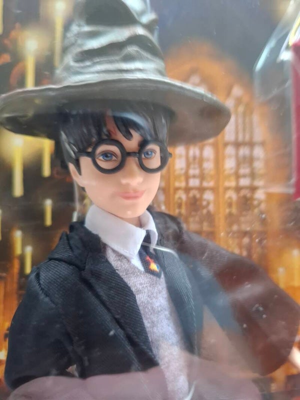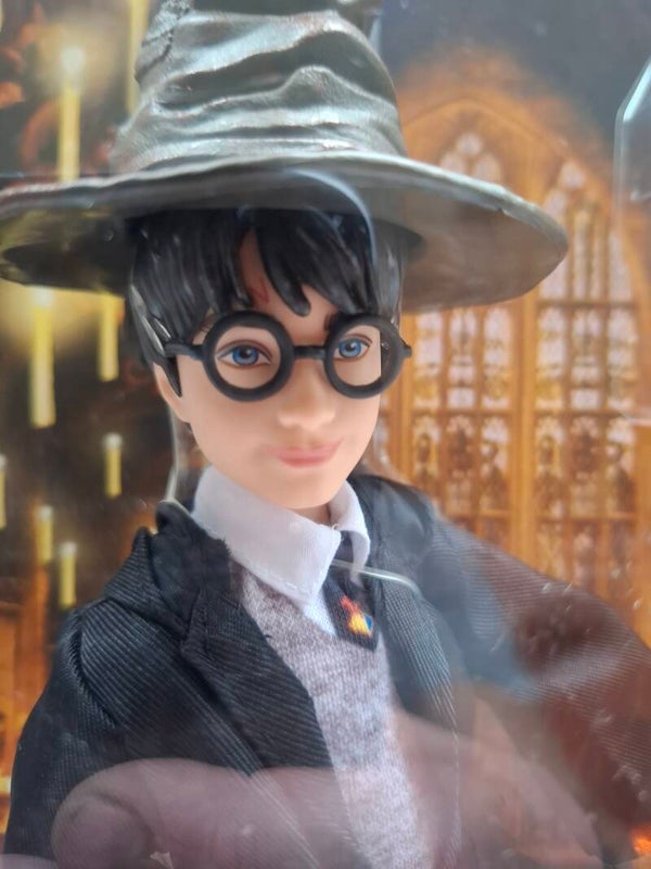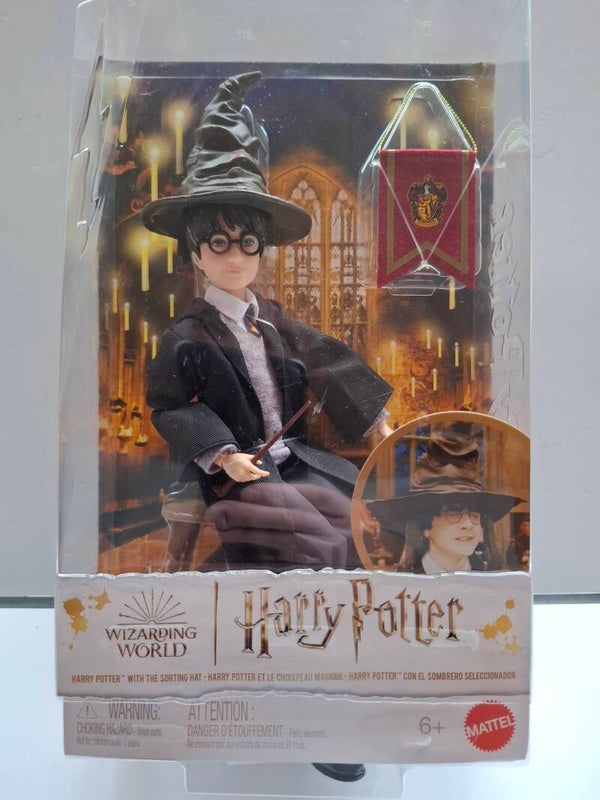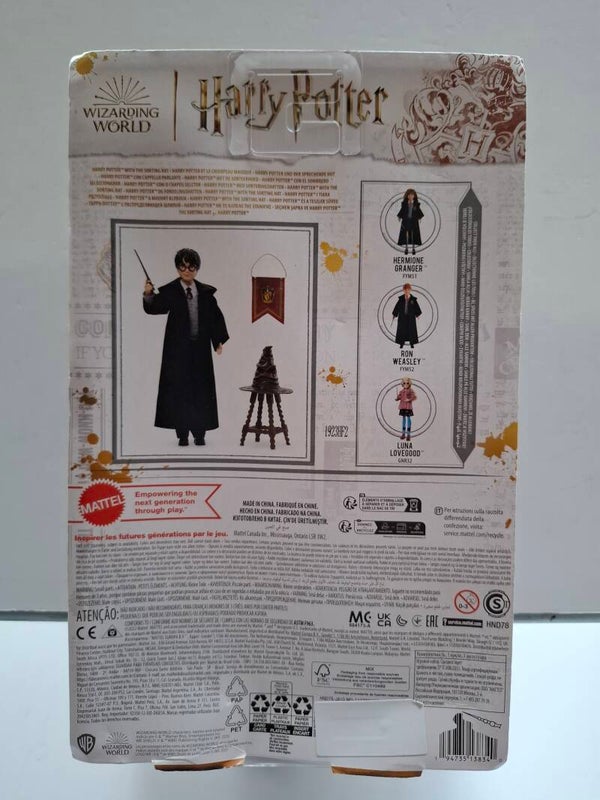 Dit is een Harry Potter-pop van Mattel, die Harry Potter voorstelt met de Sorteerhoed.
