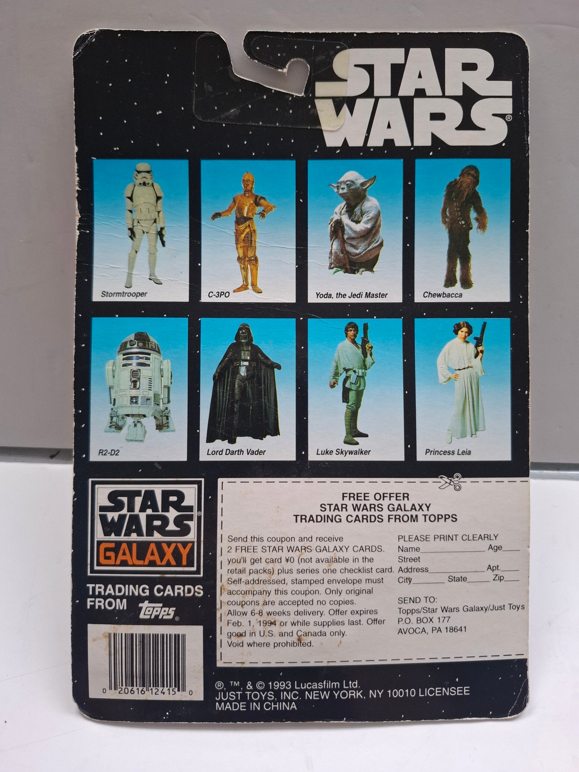 Het product wordt geleverd met een Topps Star Wars Galaxy ruilkaart.