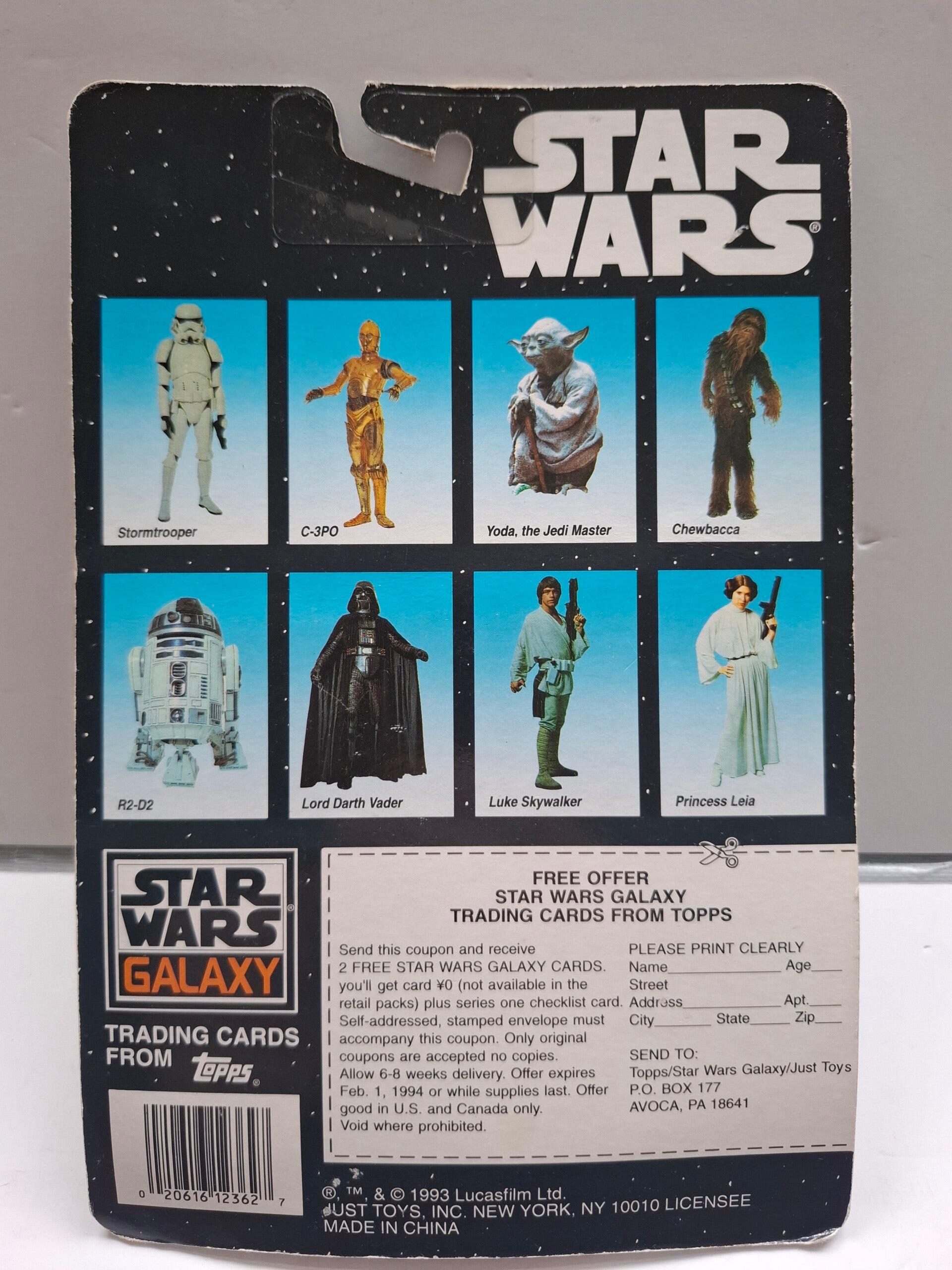 Dit specifieke figuur is een gelimiteerde editie en wordt geleverd met een bonus Topps Star Wars Galaxy ruilkaart. De verpakking geeft aan dat het itemnummer 12362 is en geschikt is voor personen van 3 jaar en ouder.