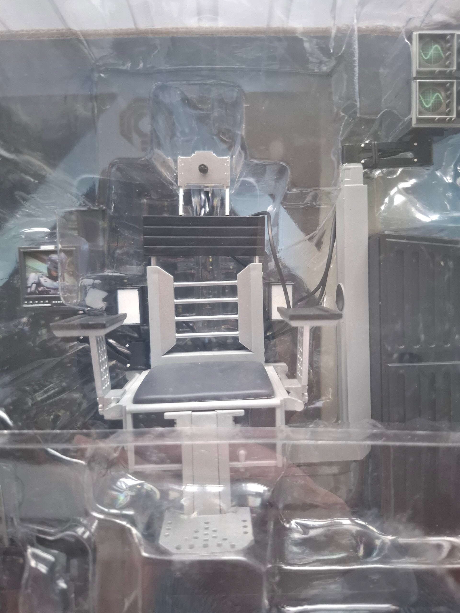 Dit is de NECA Ultimate Battle Damaged RoboCop with Chair actiefiguur. Deze figuur is uitgebracht ter ere van de 35e verjaardag van de klassieke film RoboCop in 2022.