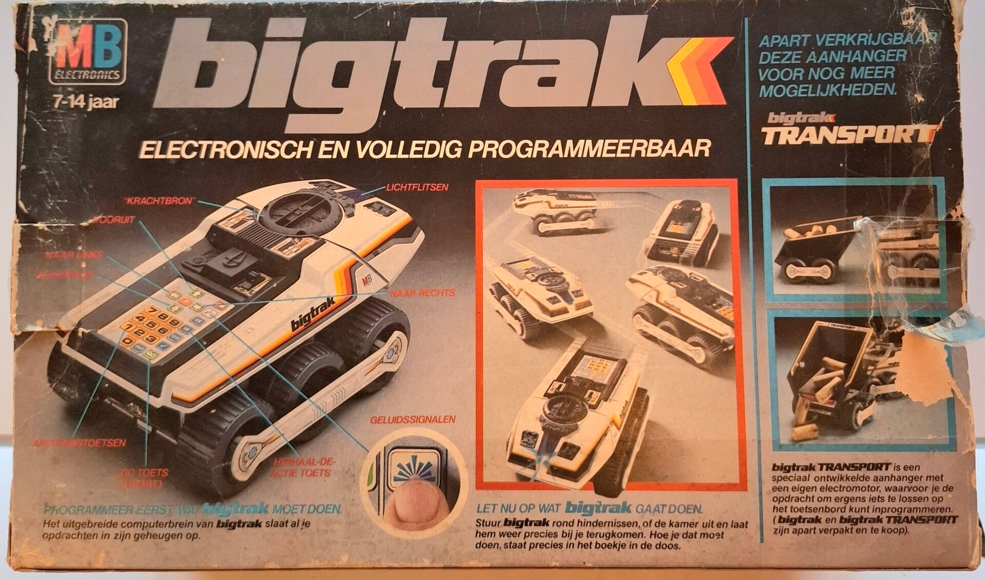 Beide in originele doos met beschrijving, Big trak en aanhanger zijn beide niet werkend. Mooi als vitrinekast object. (Prinplaat vd big trak heeft waterschade)