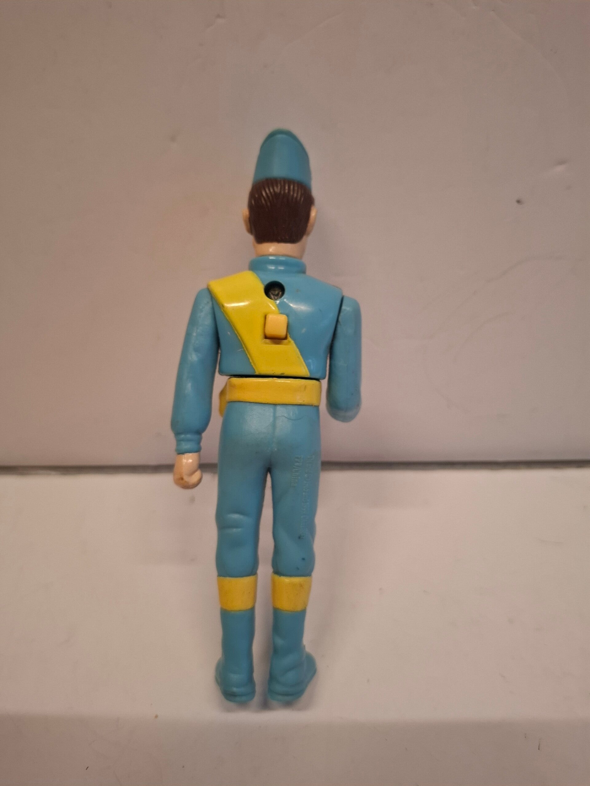 Dit is een Virgil Tracy actiefiguur uit de Thunderbirds franchise. Het specifieke figuur op de afbeelding is waarschijnlijk een vintage versie, geproduceerd door Matchbox rond 1993, of door Carlton in 1999.
