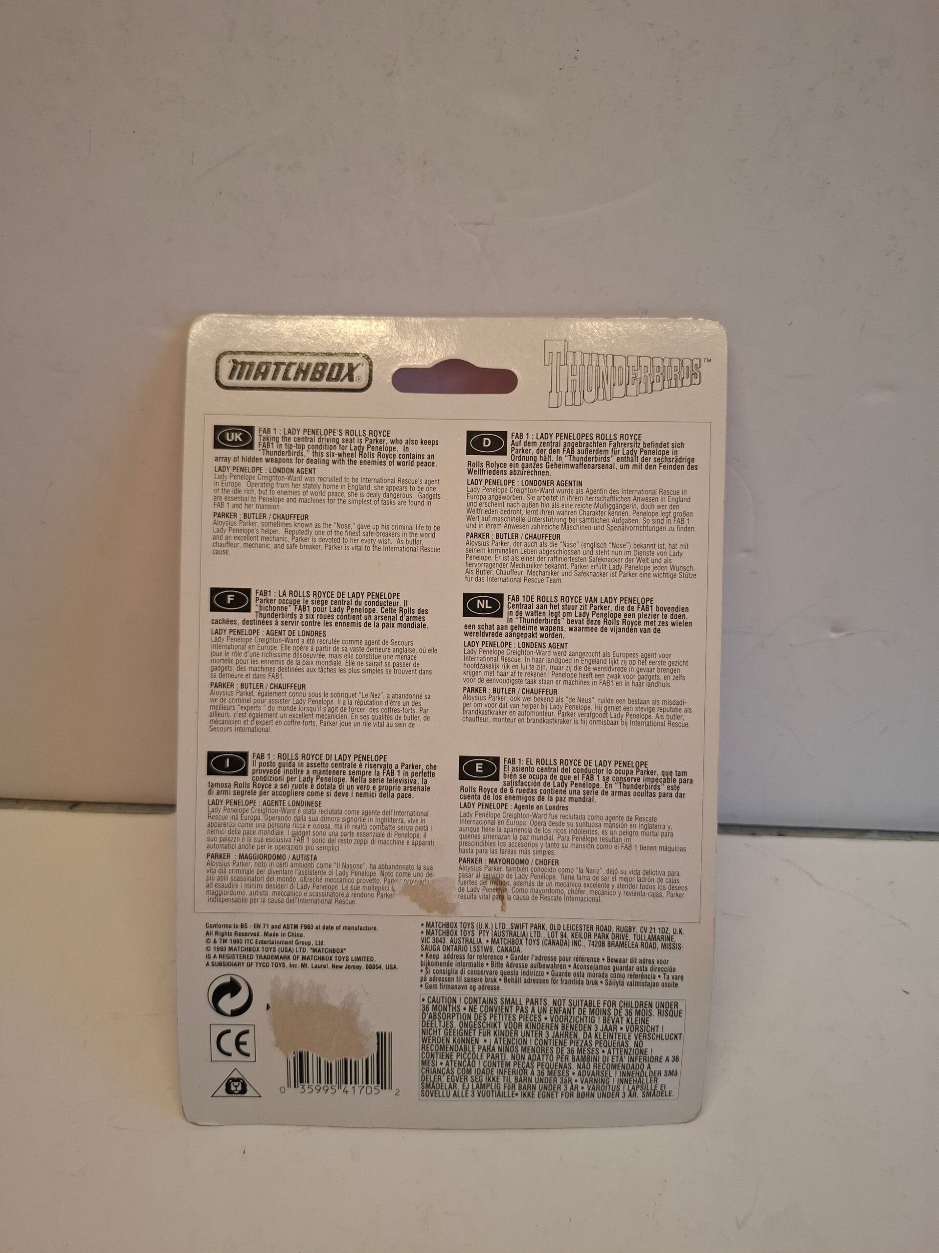 Matchbox miniatuur van Lady Penelope's Rolls-Royce FAB 1 uit de televisieserie Thunderbirds. Dit specifieke model werd geproduceerd in 1992 als onderdeel van de Matchbox Thunderbirds Collection.