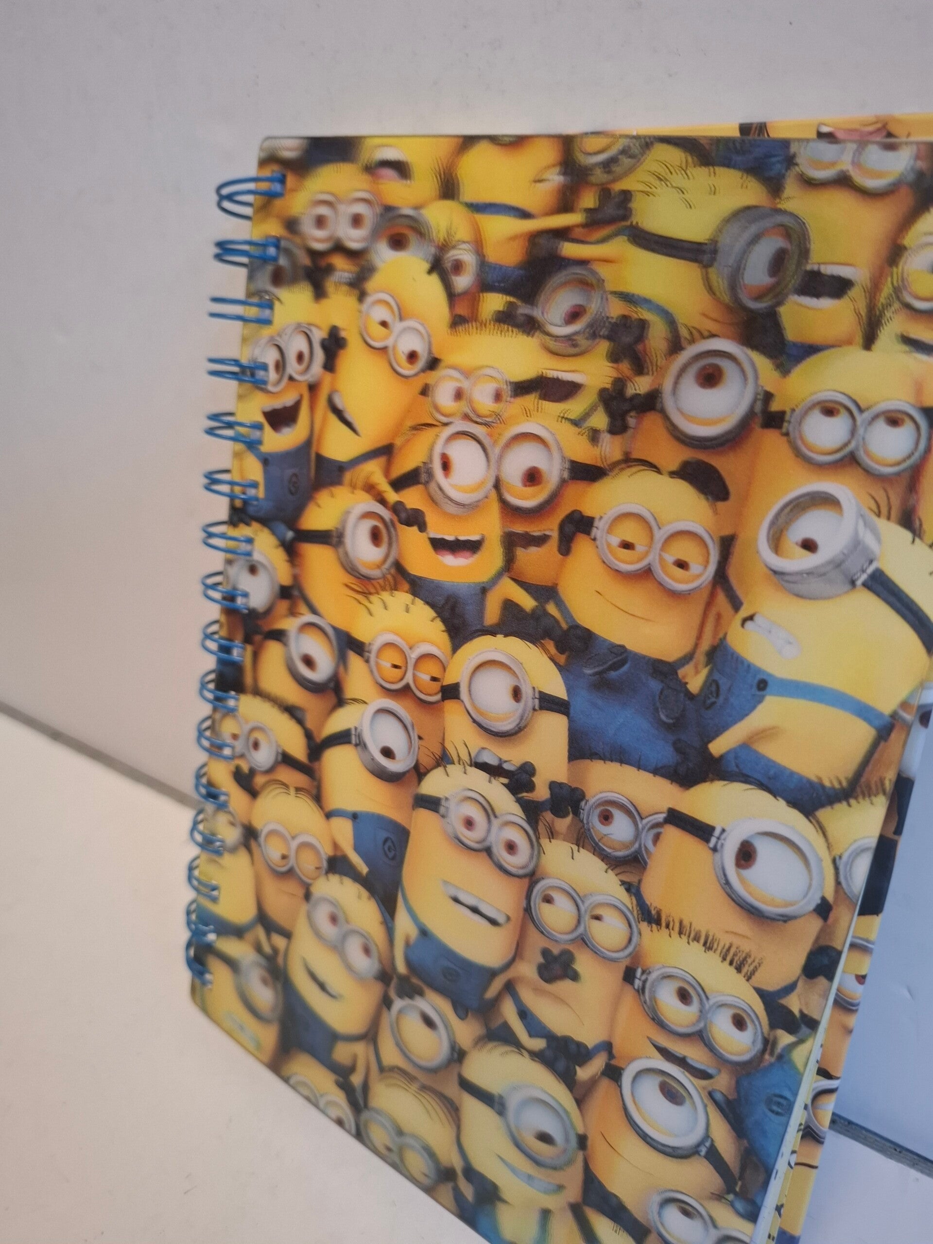 Een A5 spiraalblok met een 3D-holografische omslag met daarop de populaire personages de Minions uit de filmreeks Verschrikkelijke Ikke (Despicable Me).