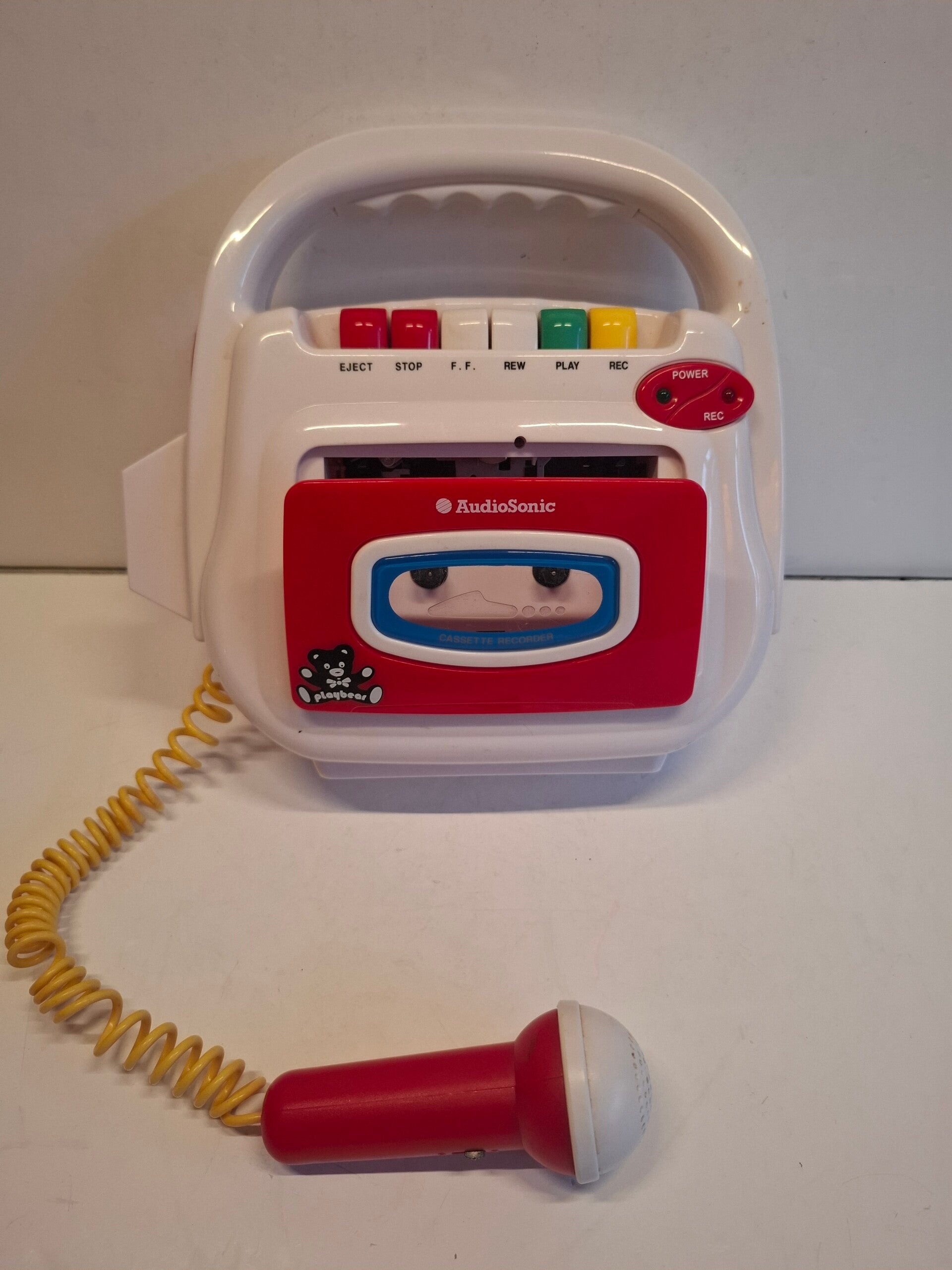 Type: Kindercassetterecorder (het logo toont een beertje genaamd 'playbear' of iets dergelijks)