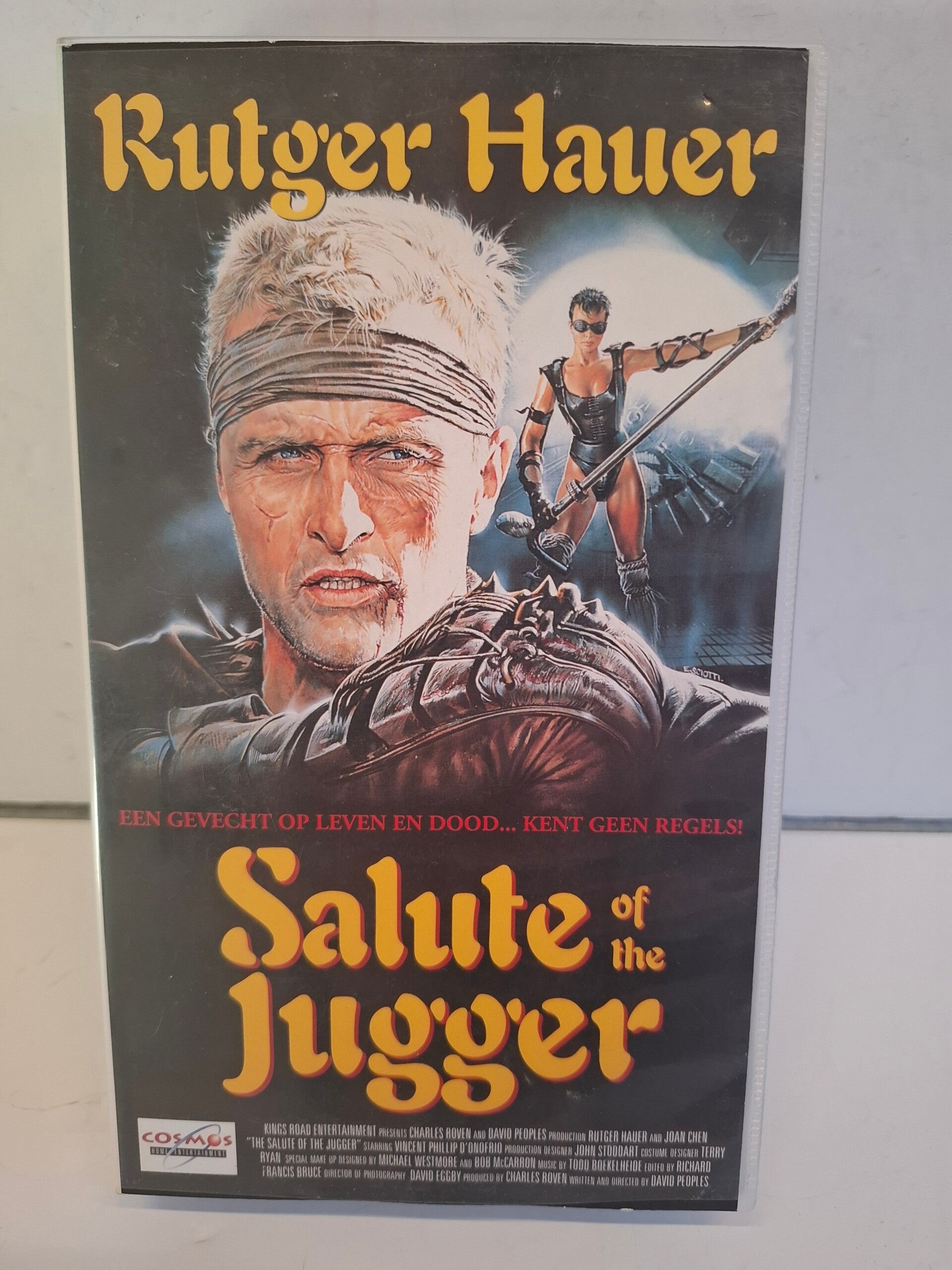 Nederlandse VHS-videoband van de post-apocalyptische cultfilm Salute of the Jugger uit 1989. De film staat ook bekend onder de Amerikaanse titel The Blood of Heroes.