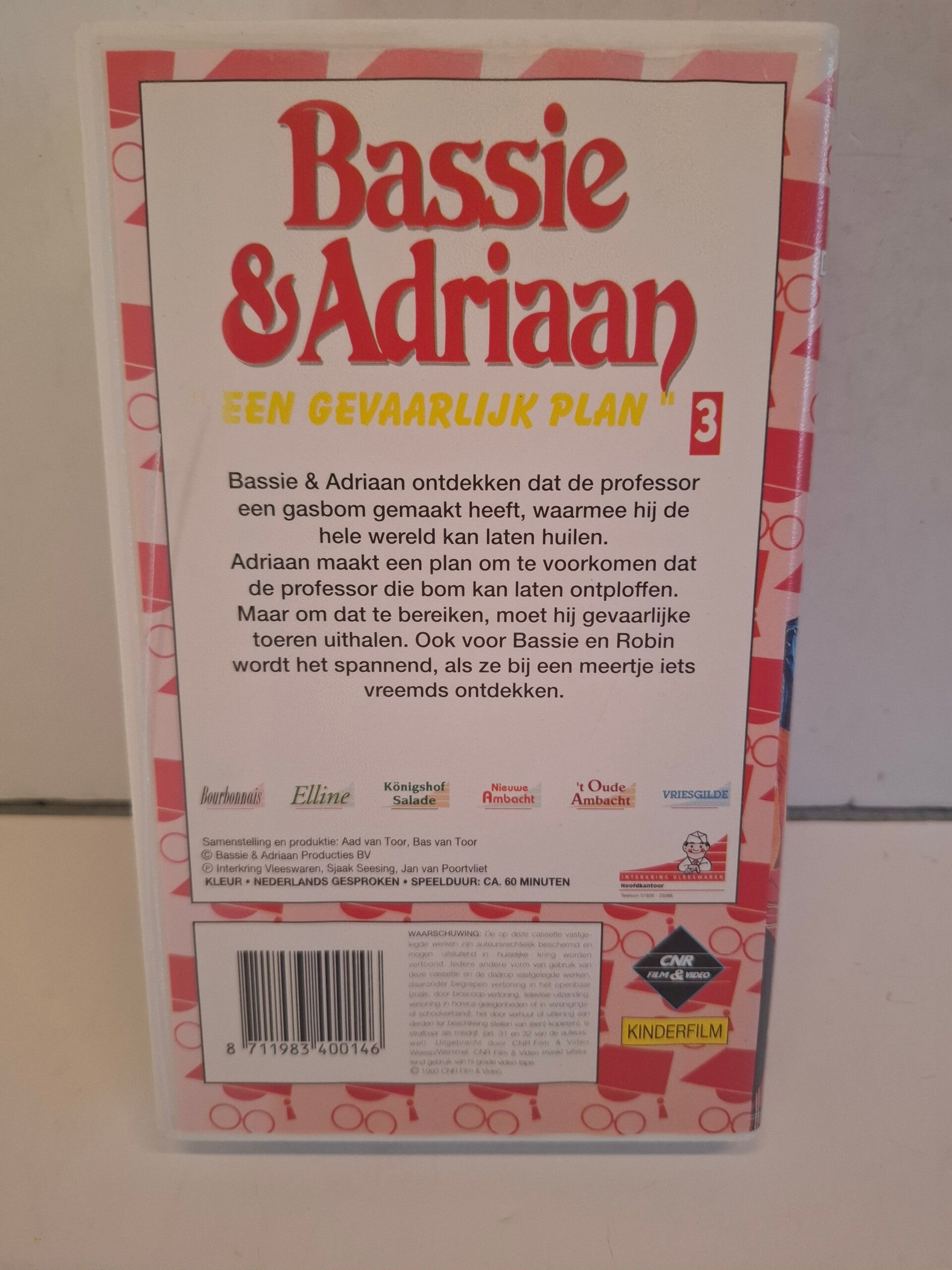 VHS-videoband "De Huilende Professor", een populaire Nederlandse televisieserie van Bassie & Adriaan. De serie is oorspronkelijk uitgezonden in 1982 en gaat over de gestoorde Professor Archibald Chagrijn die de wereld wil laten huilen met zijn "griengas". Deze specifieke band is deel 3 en heeft als subtitel "'Een gevaarlijk plan'".