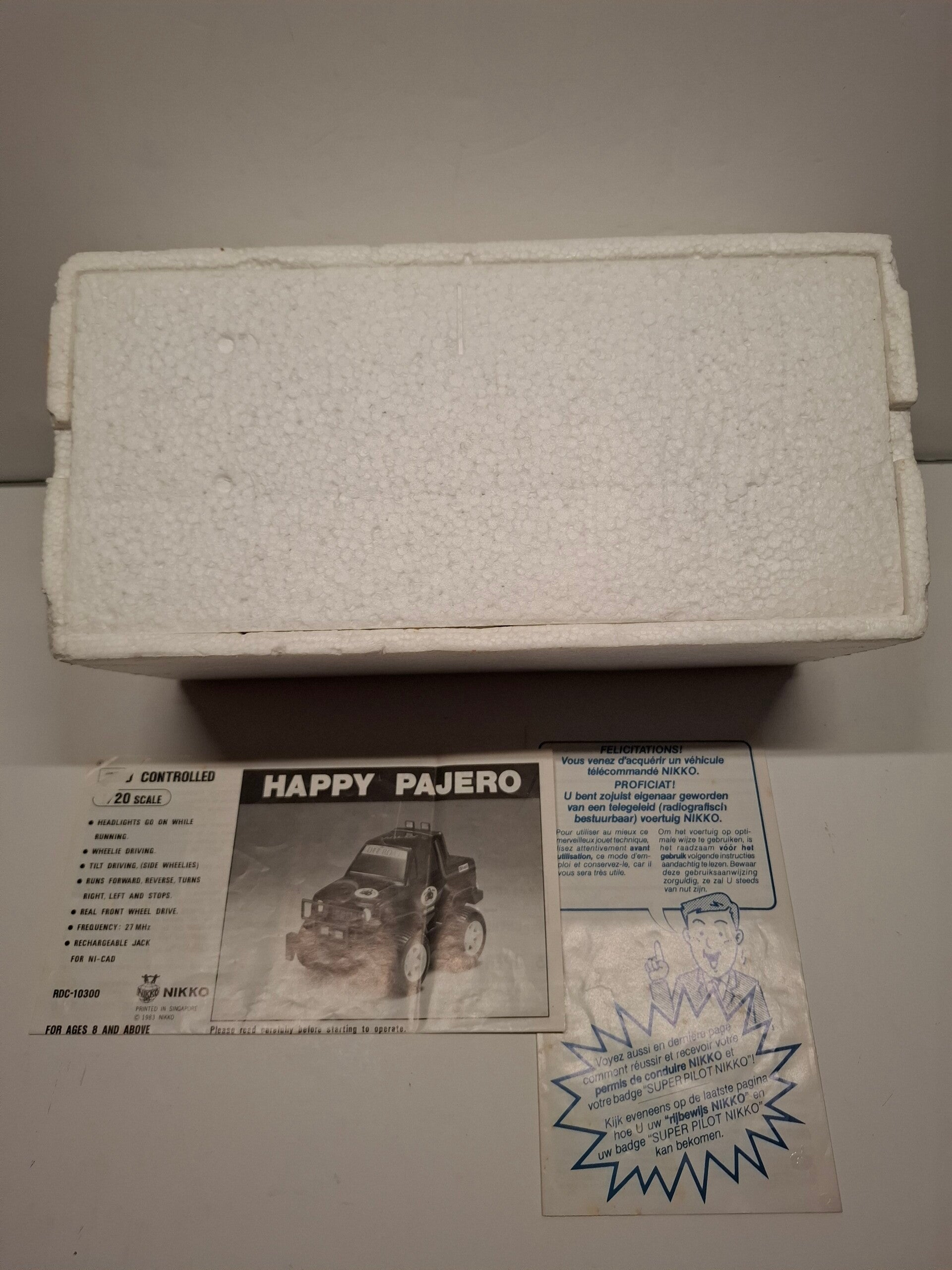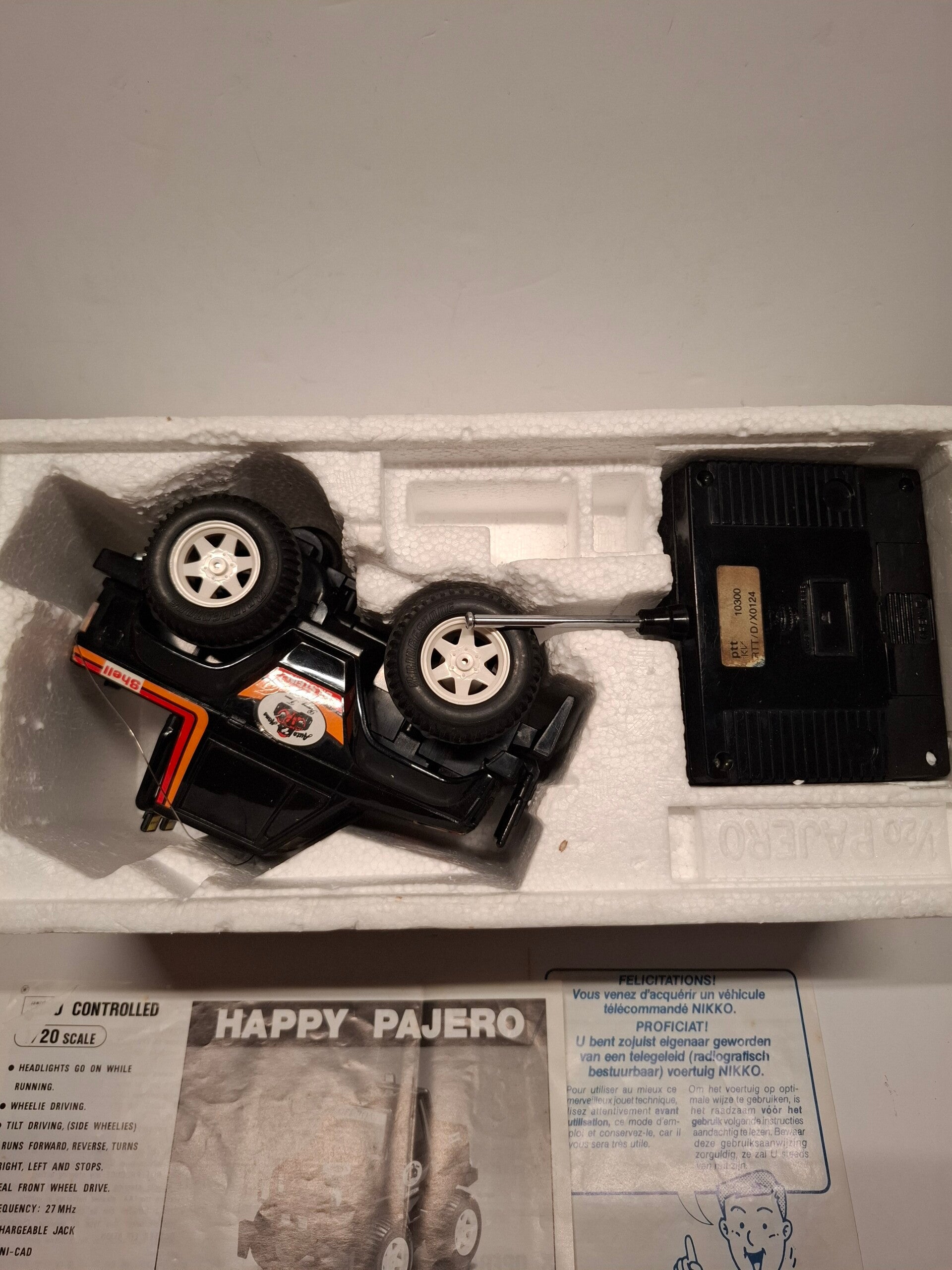 Nikko Happy Pajero radiografisch bestuurbare auto, model ROC-10300. Het is een vintage verzamelobject dat oorspronkelijk uit 1983 stamt.