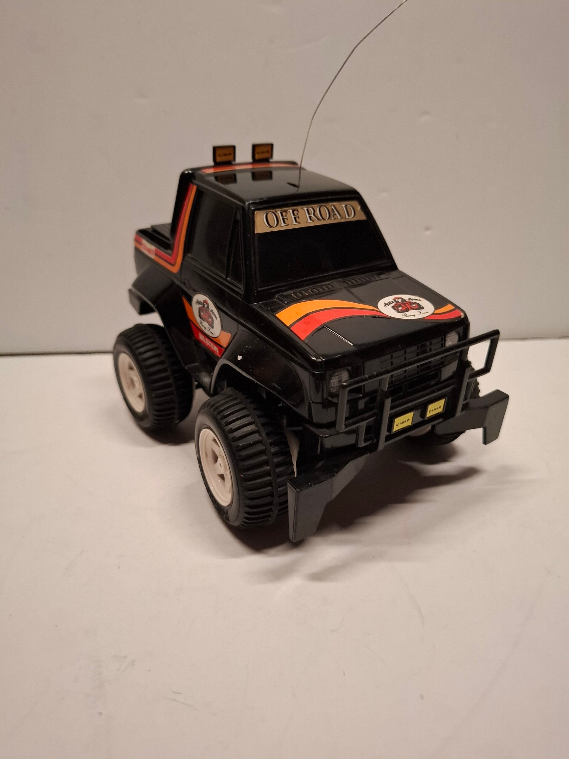 - Kenmerken: Volledig functionele RC-auto met 'wheelie & tilt driving'-functie, koplampen die aangaan tijdens het rijden en een oplaadpoort voor Ni-Cad-batterijen