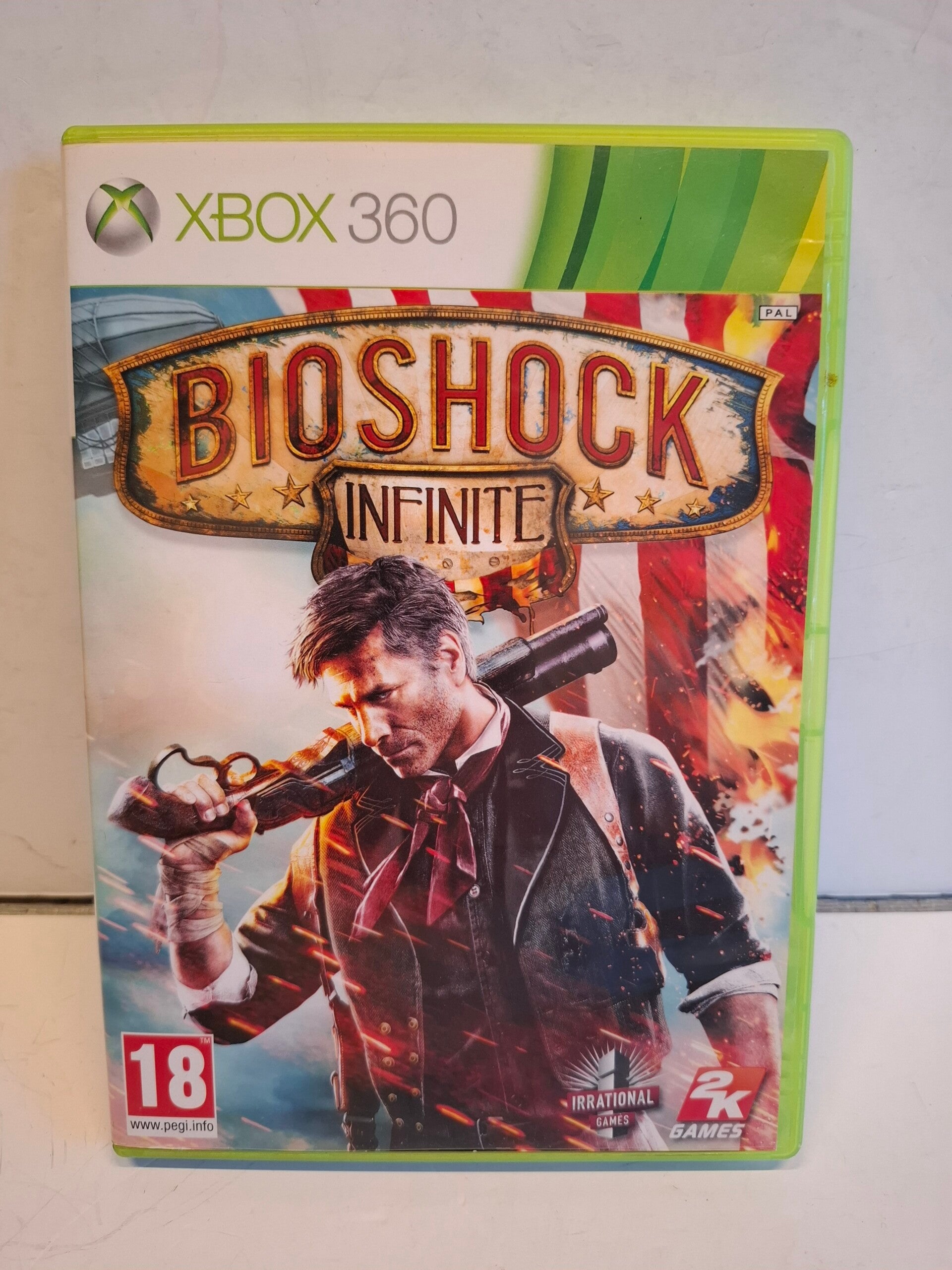 Dit is de game BioShock Infinite voor de Xbox 360. Het is een veelgeprezen first-person shooter die zich afspeelt in de vliegende stad Columbia in het jaar 1912.