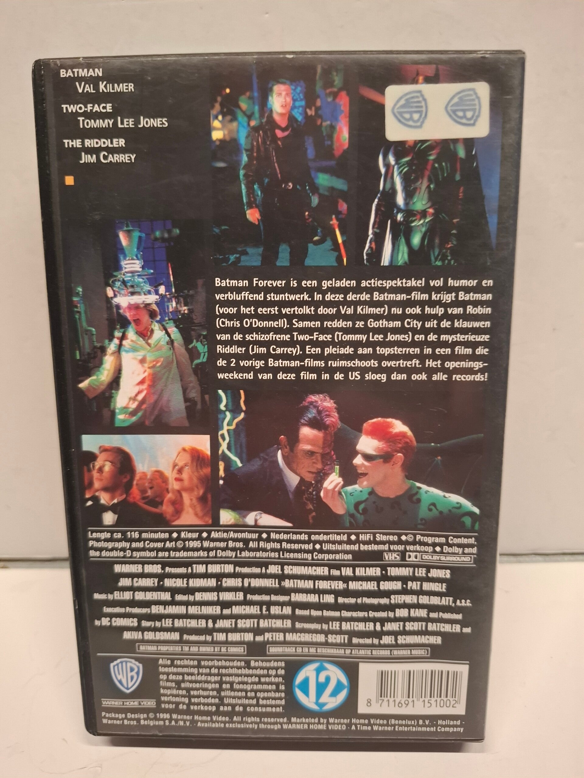 VHS-videoband van de film Batman Forever uit 1995. De film is geregisseerd door Joel Schumacher en werd geproduceerd door Warner Home Video.