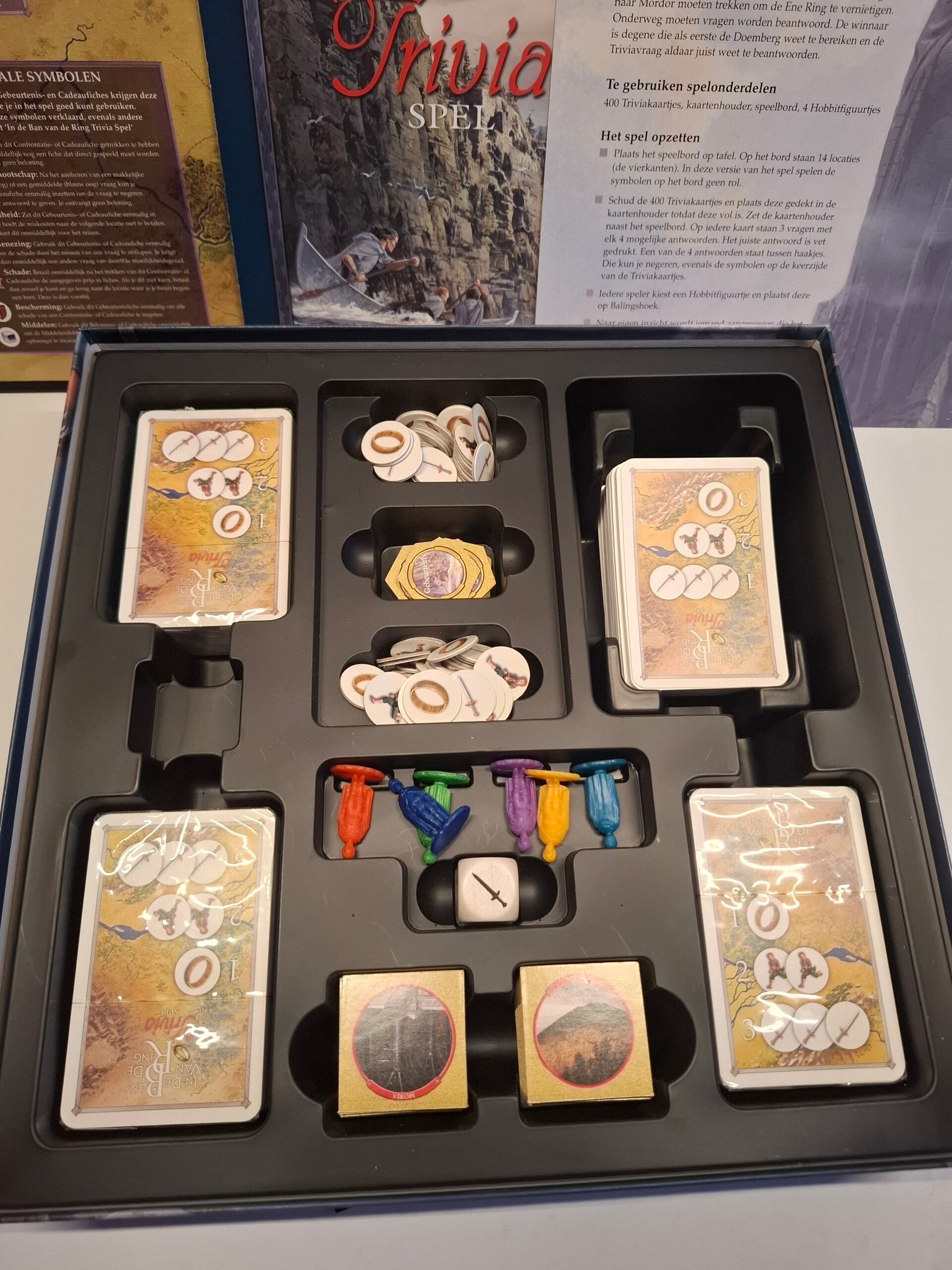 Inhoud: Het spel bevat 400 trivia kaarten met in totaal 1200 meerkeuzevragen, gebaseerd op de boeken van J.R.R. Tolkien.