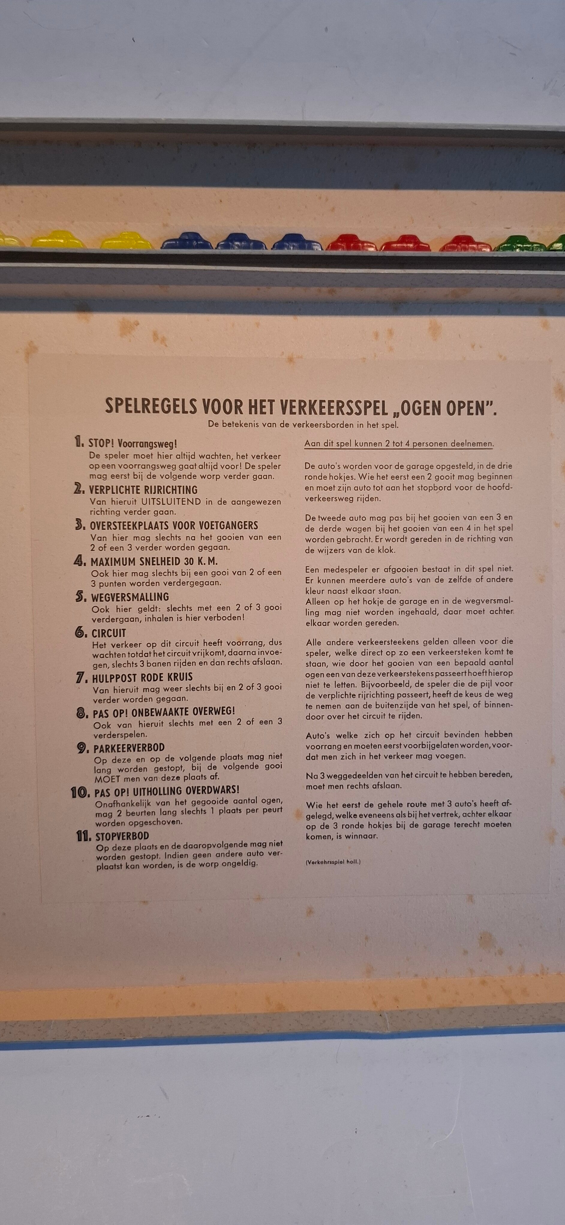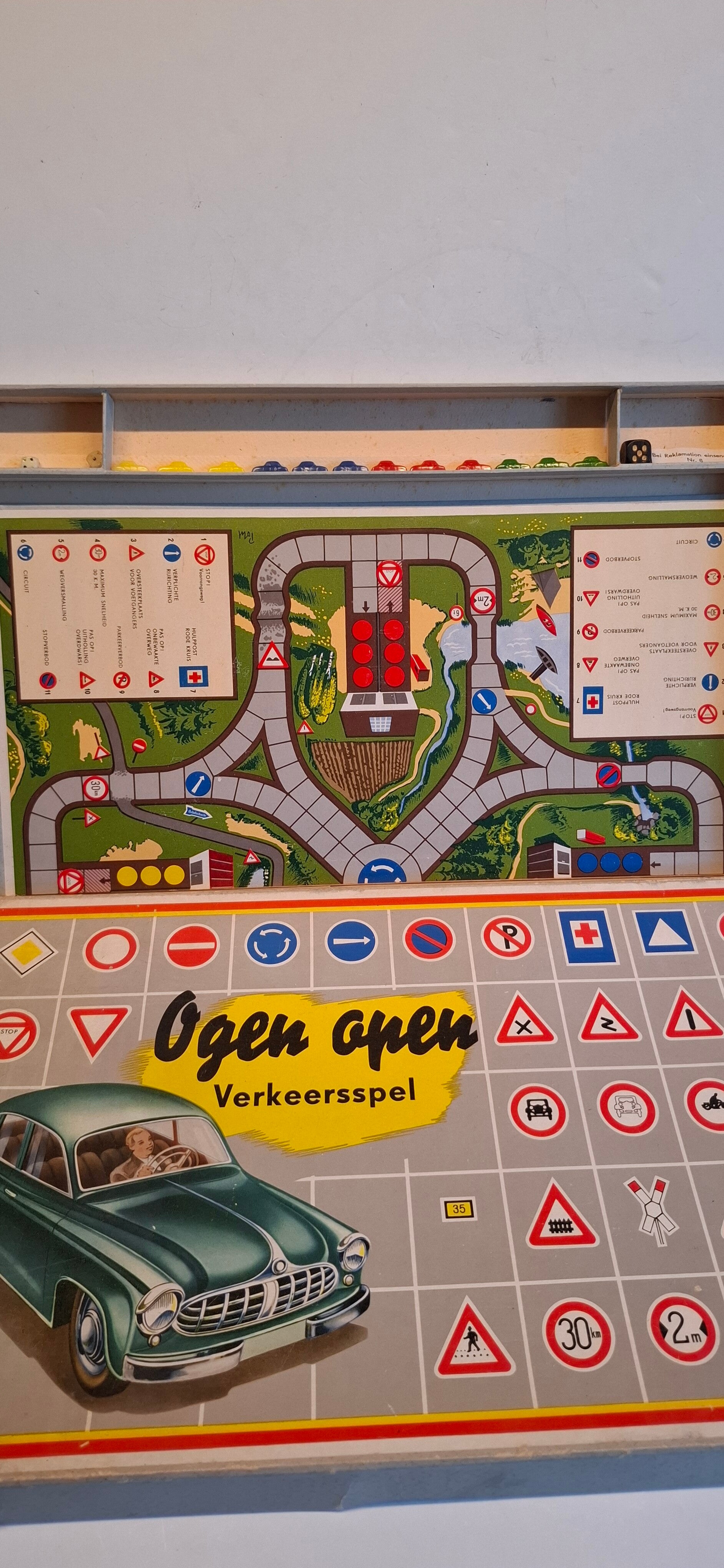 Dit is het Ogen Open Verkeersspel, een educatief bordspel dat voor het eerst werd uitgebracht rond 1958.