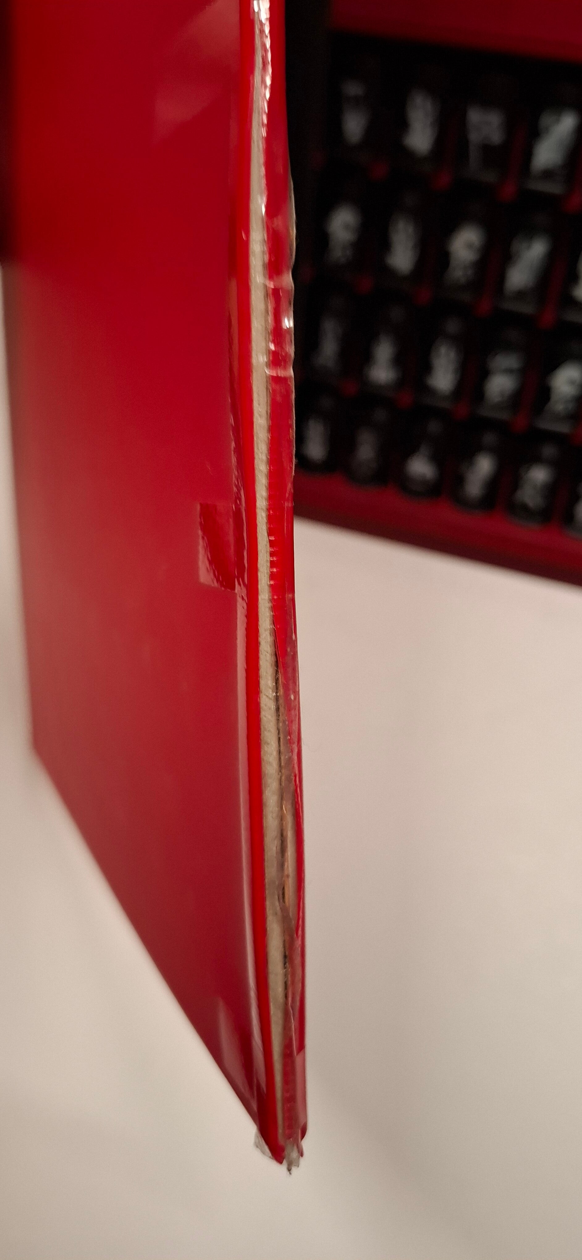 Bord is vaak gebogen en is deels los van elkaar is geplakt met plakband.