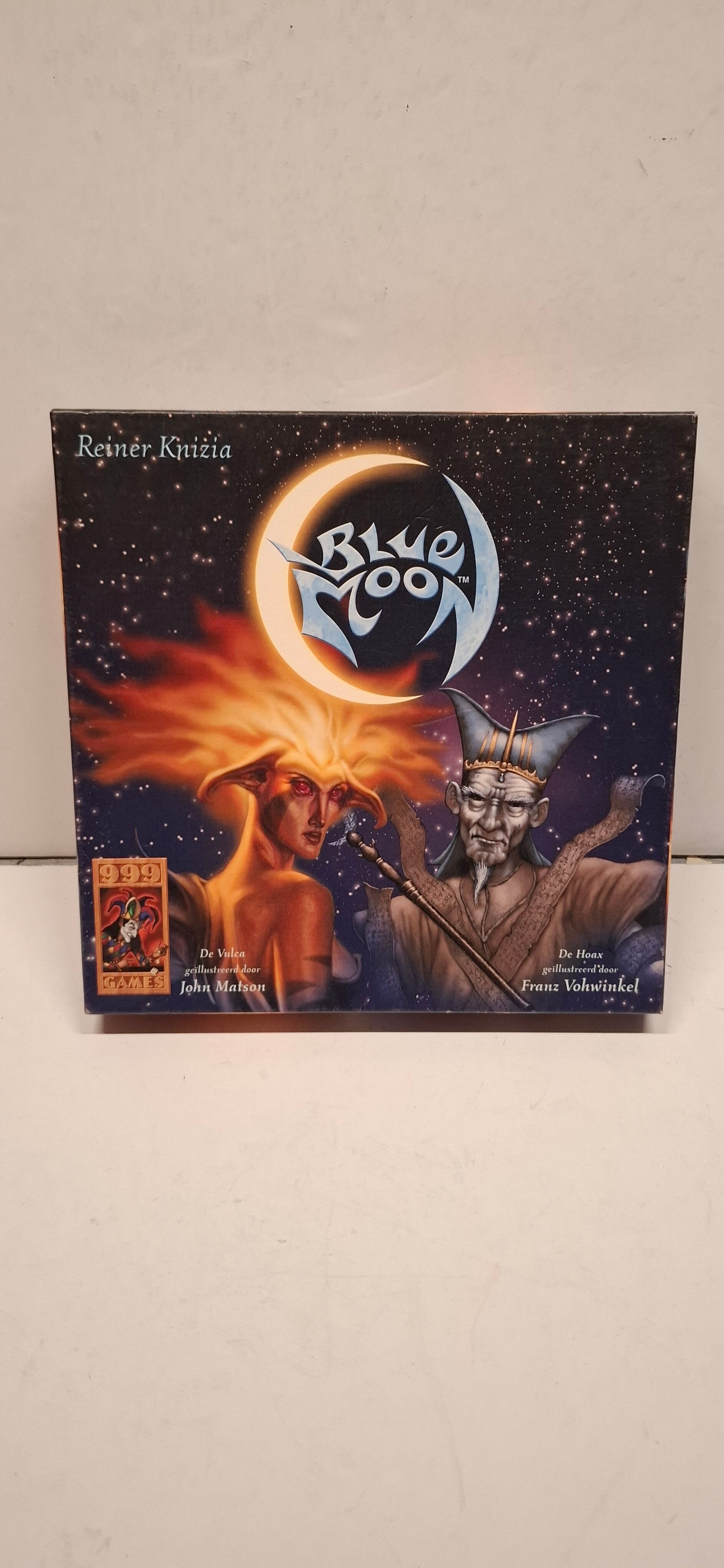 Blue Moon kaartspel, een strategisch tweespelerspel ontworpen door Reiner Knizia. Het spel is uitgegeven door 999 Games in het Nederlands.
