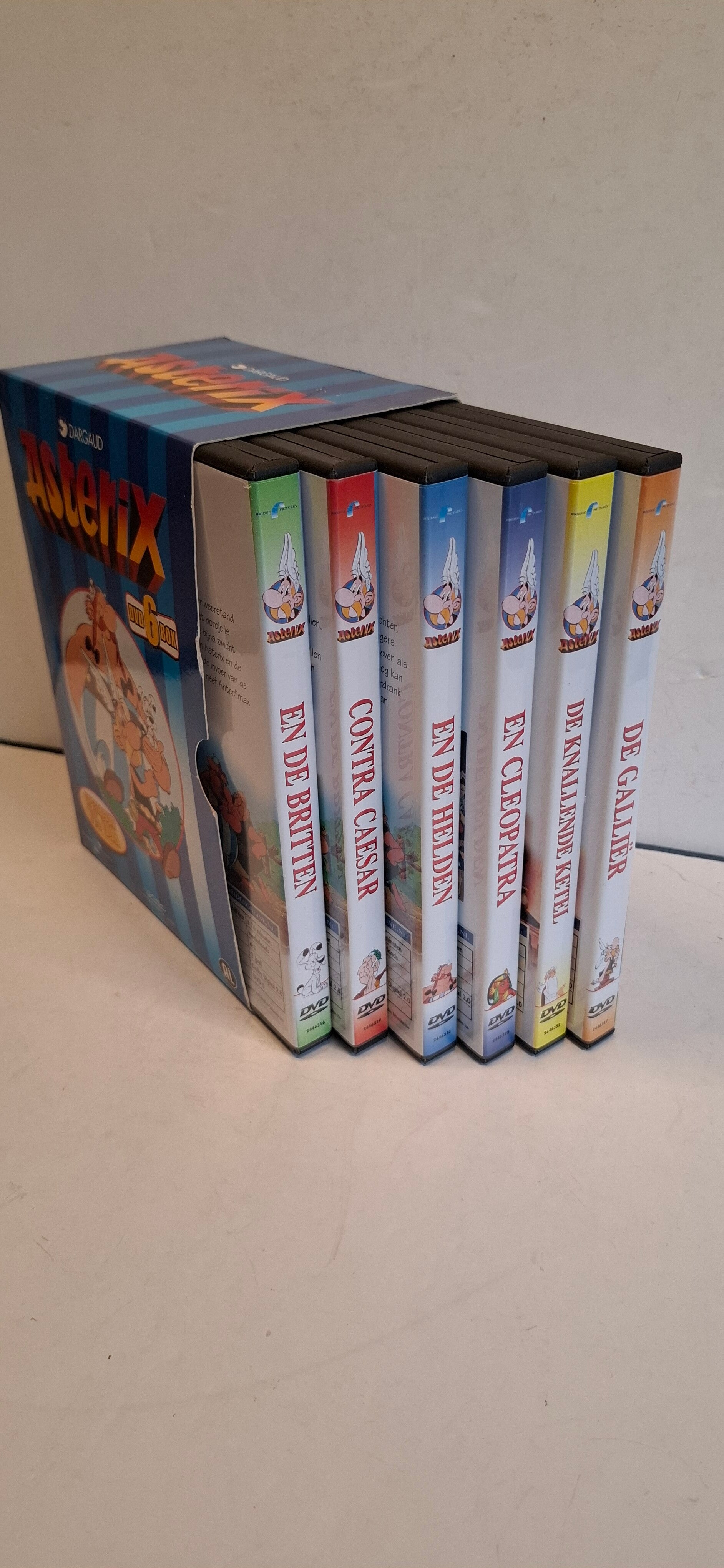 Asterix DVD 6 Box, een verzamelbox uitgegeven door Bridge Entertainment Group in samenwerking met Dargaud. Deze box bevat zes klassieke tekenfilms van de beroemde Galliërs, met een totale speelduur van ongeveer 7,5 uur (450 minuten).