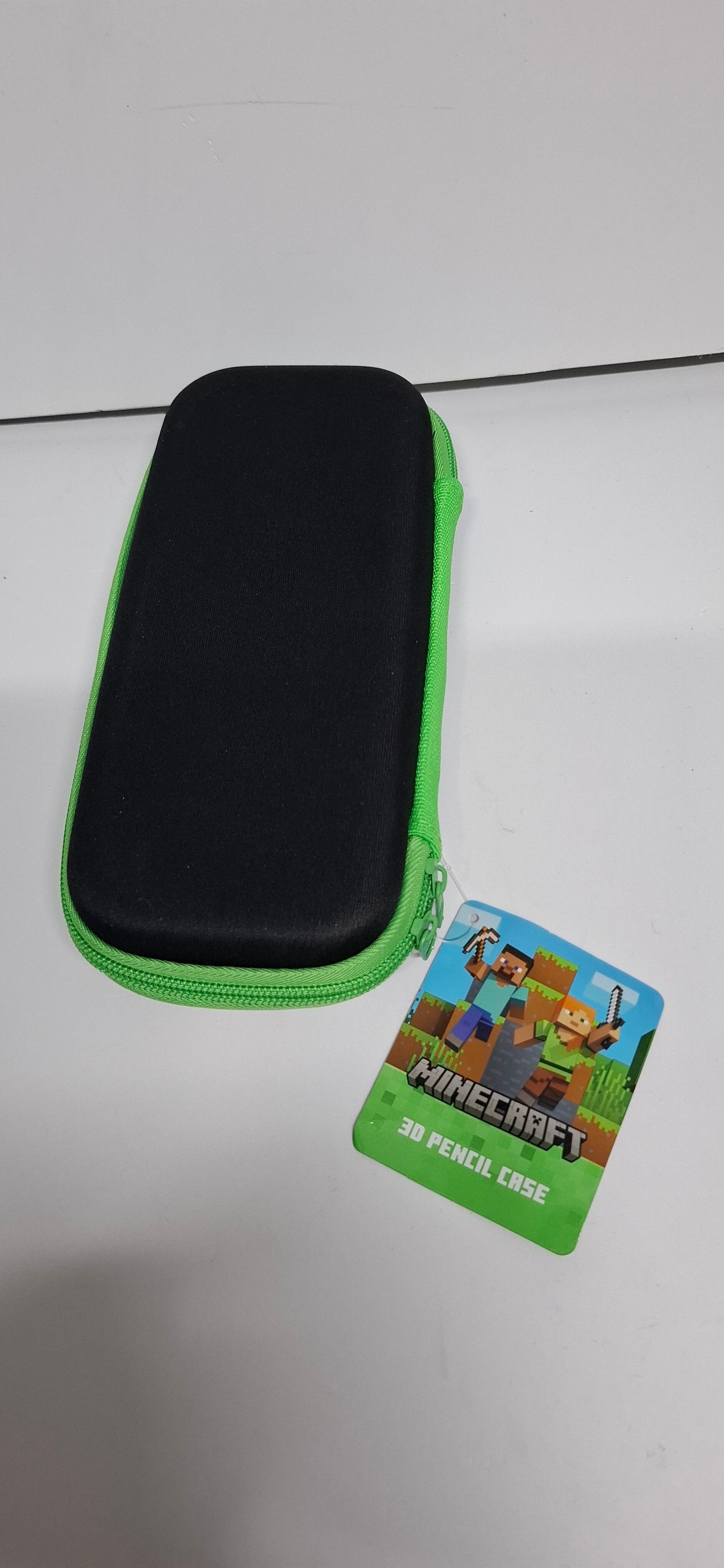 Minecraft 3D etui met een afbeelding van Steve en zijn diamanten zwaard in reliëf. Het stevige, voorgevormde ontwerp is speciaal gemaakt voor fans van de game en biedt een opvallende manier om schrijfspullen te bewaren.