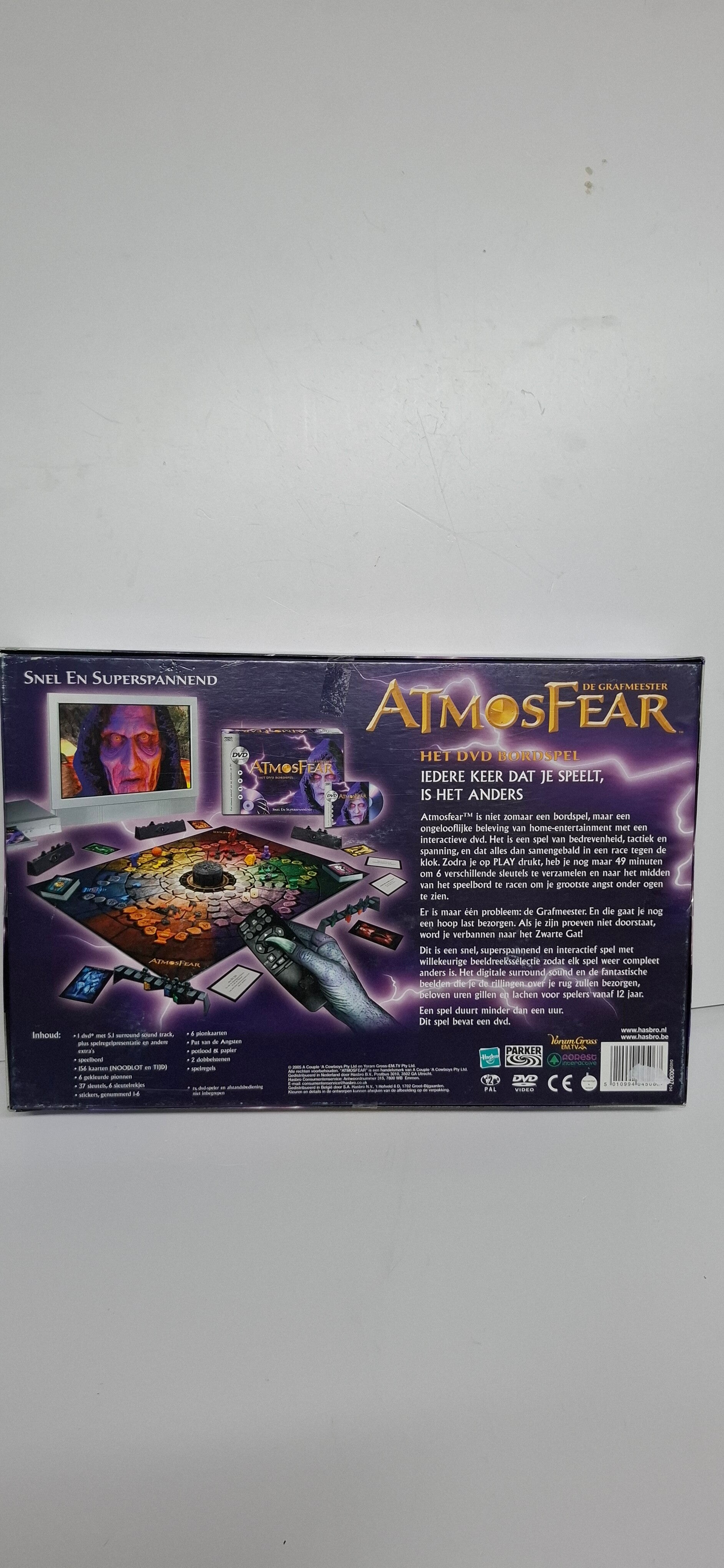 Atmosfear: Het DVD Bordspel", een interactief bordspel met een horror-thema dat wordt bestuurd door een begeleidende dvd.