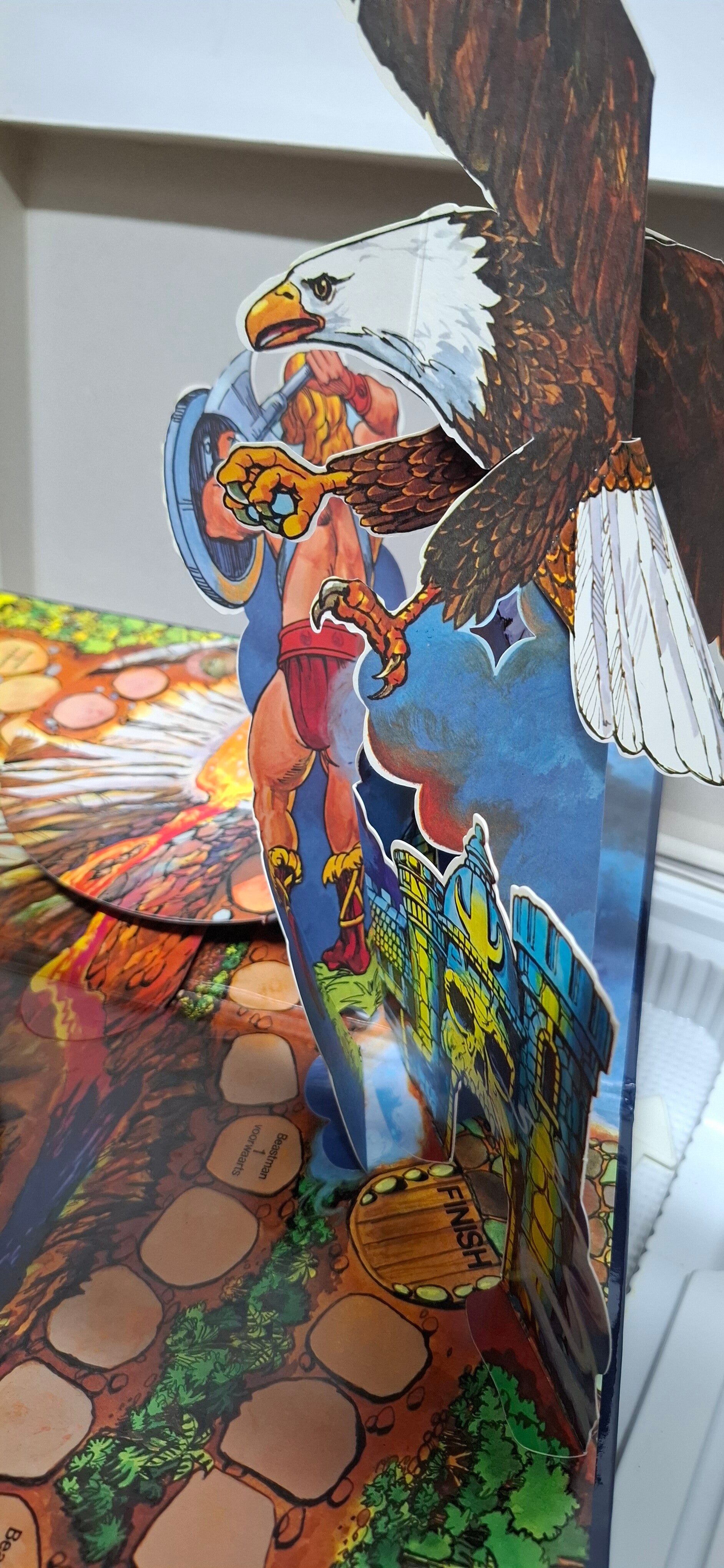 Interactief bord: Het is een 3D-bordspel waarbij verschillende elementen uit de wereld van He-Man "omhoog ploppen" (pop-up) wanneer het bord wordt geopend.